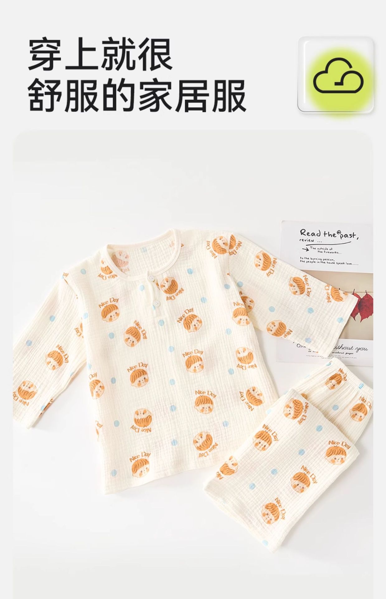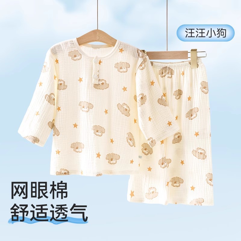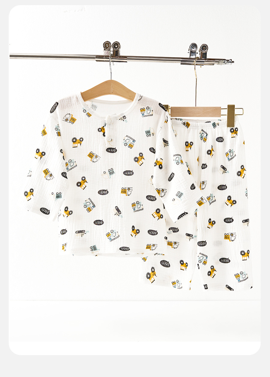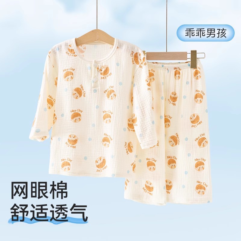 어린이 잠옷 소년의 거즈 코튼 여름 7 점 슬리브 코튼 느슨한 에어컨 의류 얇은 소녀의 홈 의류 세트