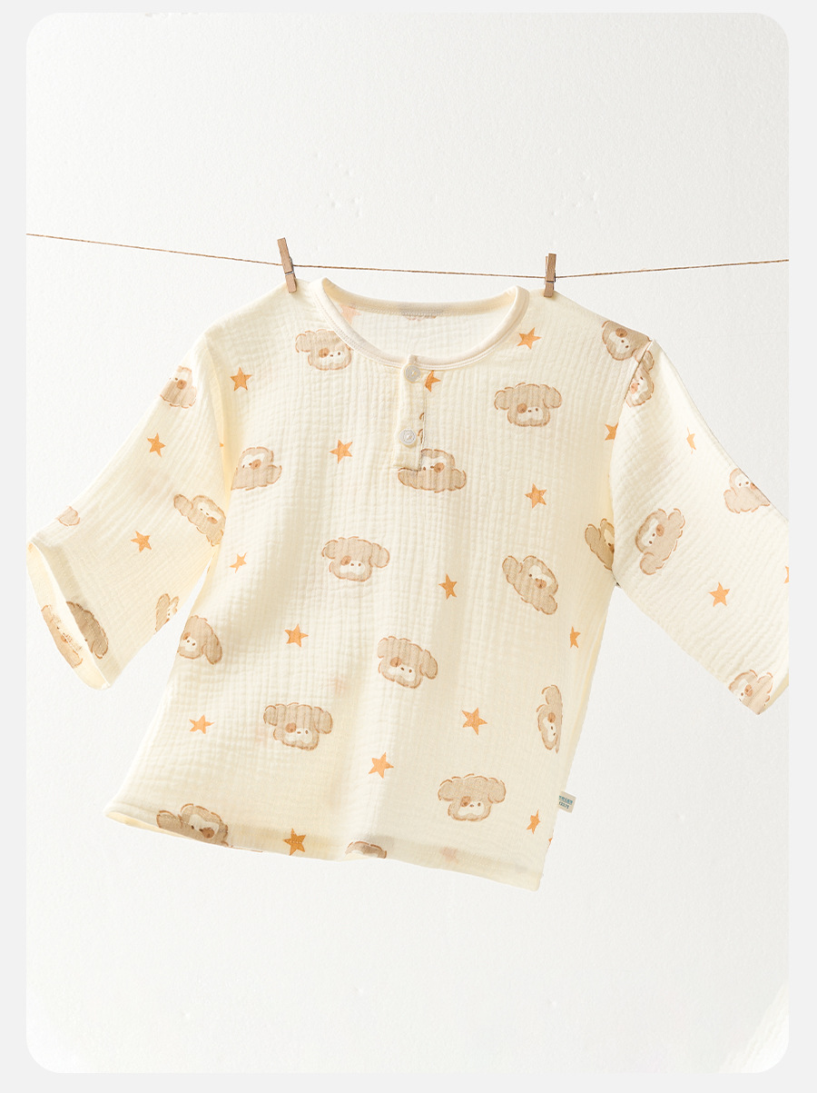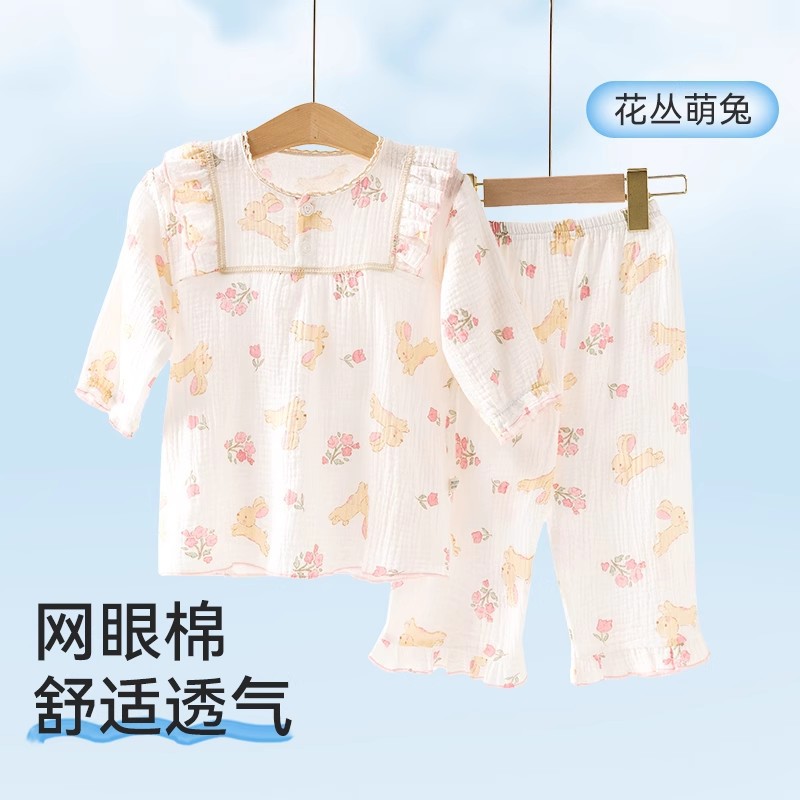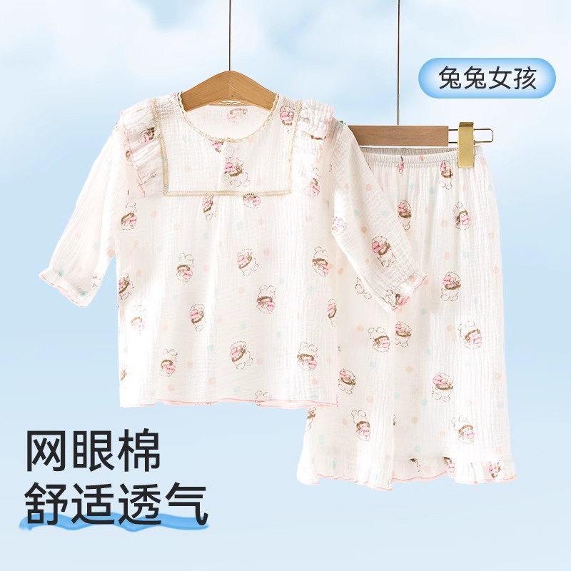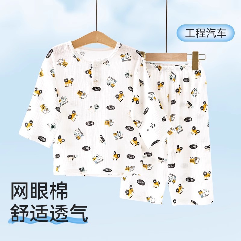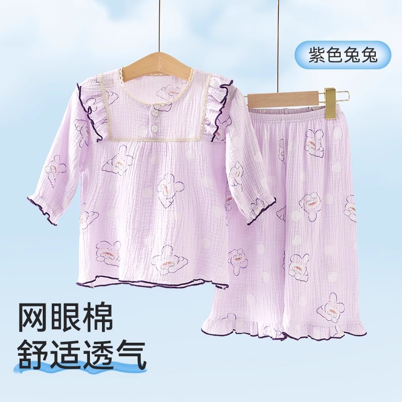 어린이 잠옷 소년의 거즈 코튼 여름 7 점 슬리브 코튼 느슨한 에어컨 의류 얇은 소녀의 홈 의류 세트