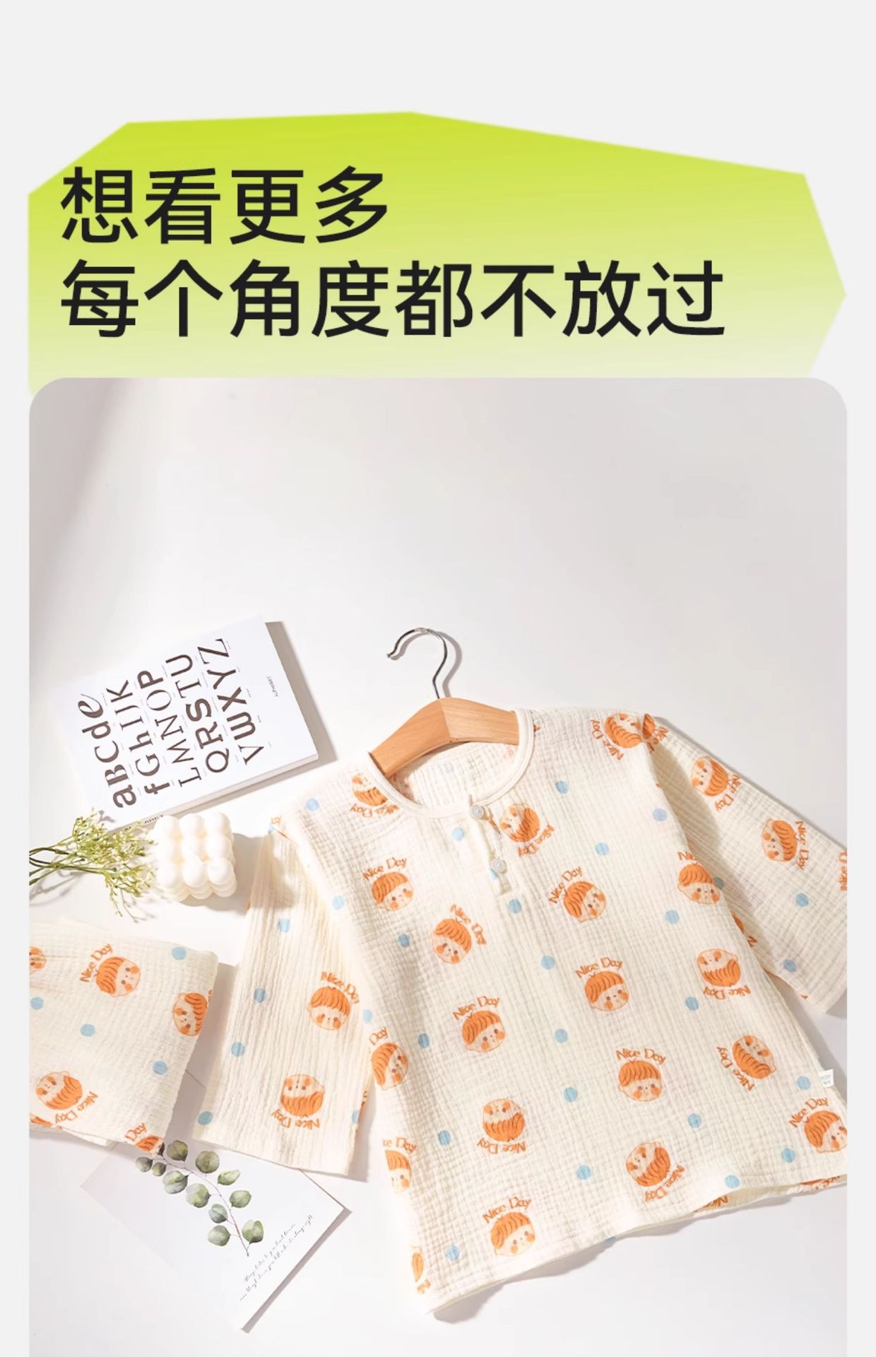 어린이 잠옷 소년의 거즈 코튼 여름 7 점 슬리브 코튼 느슨한 에어컨 의류 얇은 소녀의 홈 의류 세트스토어 가기