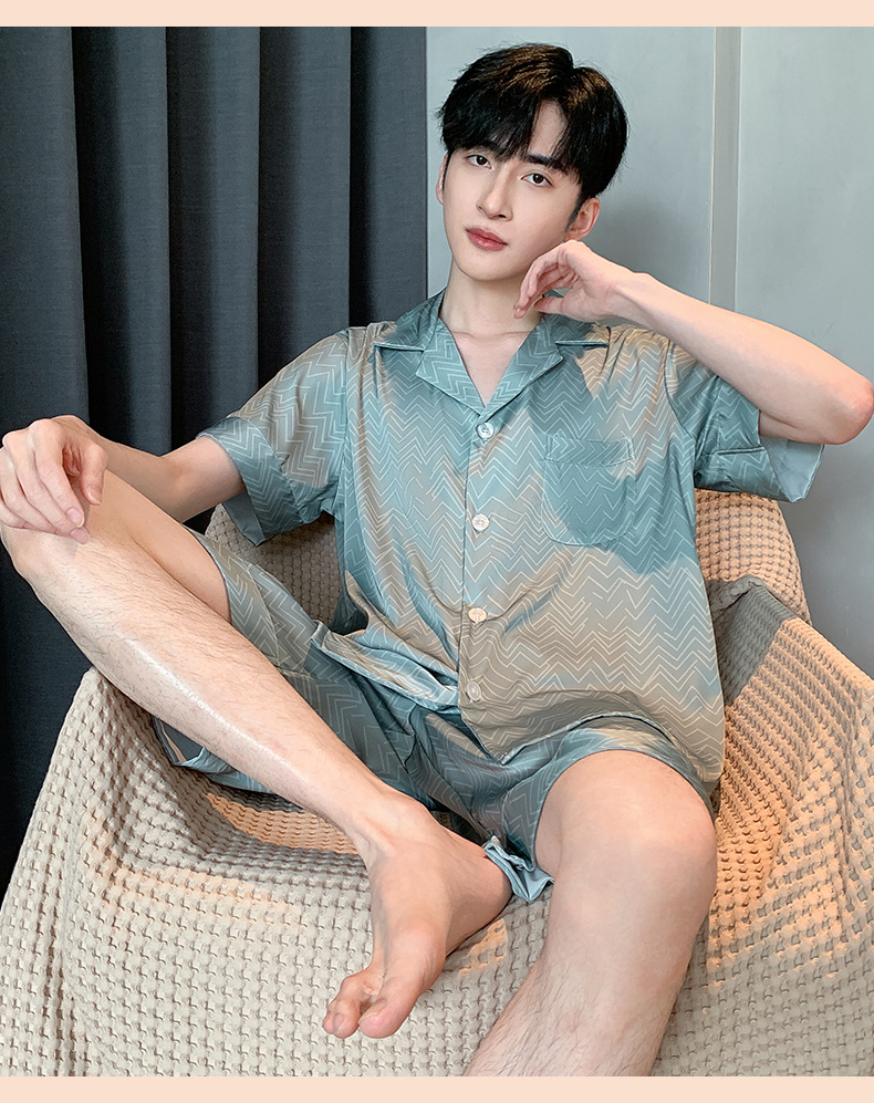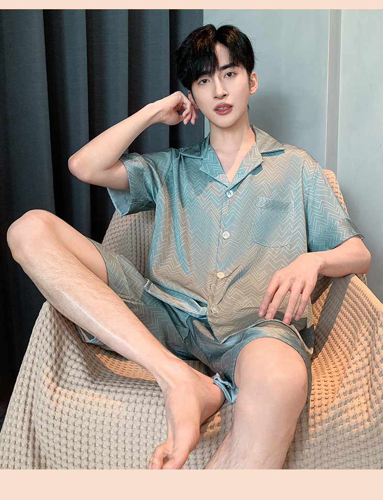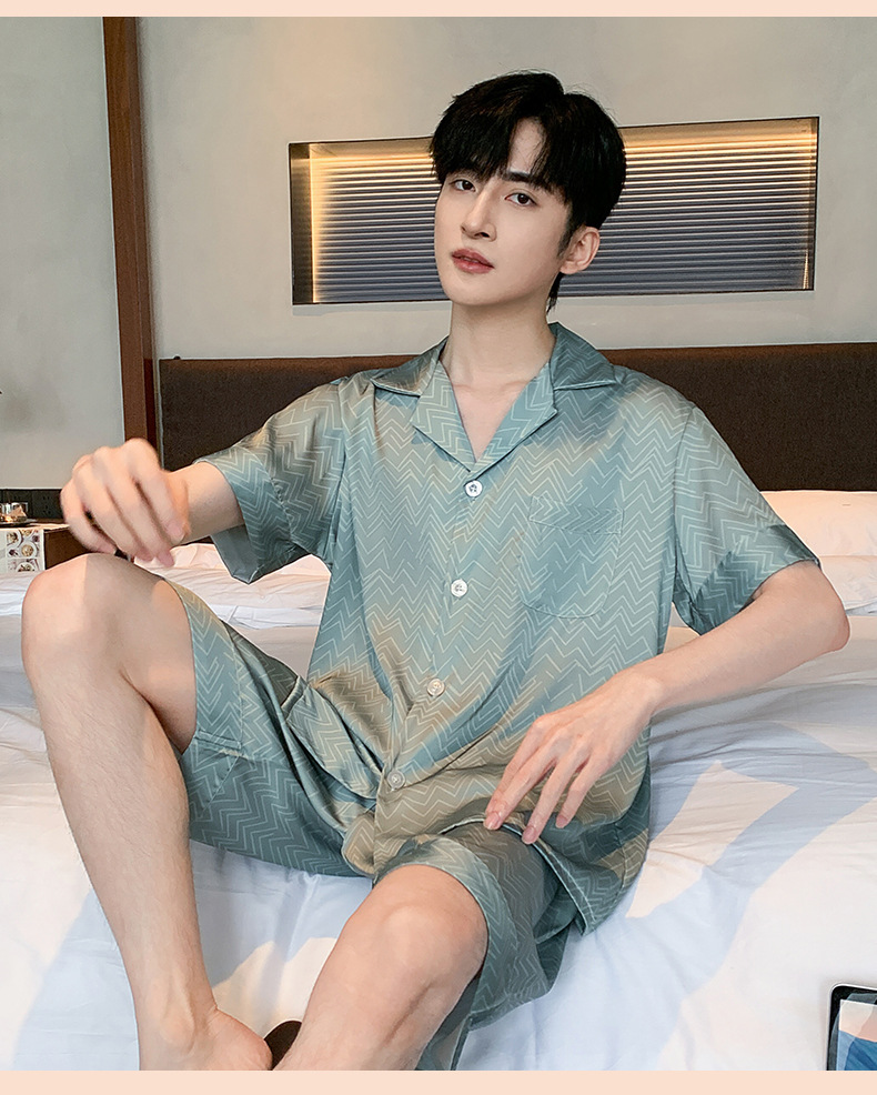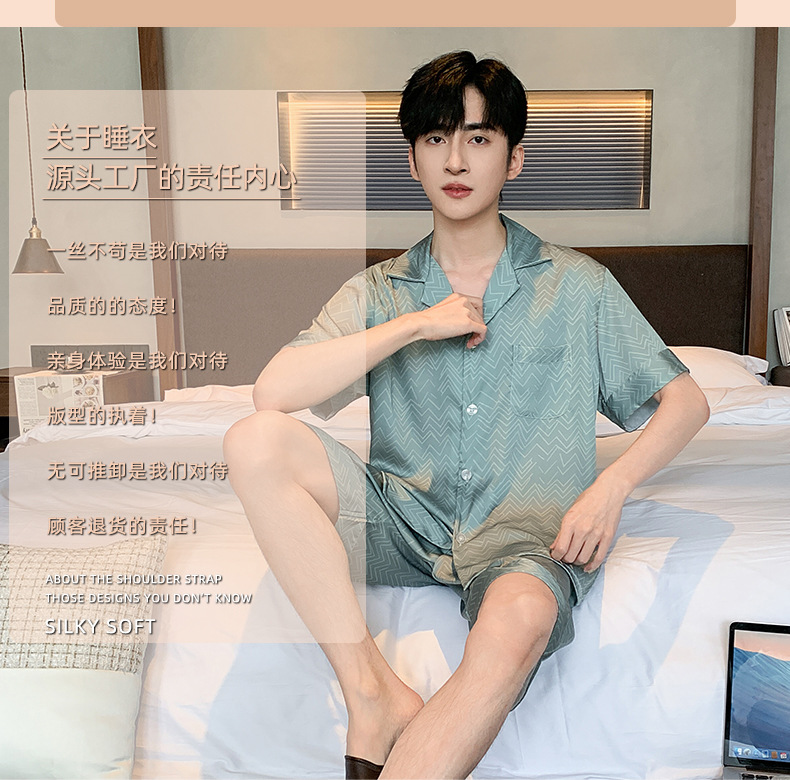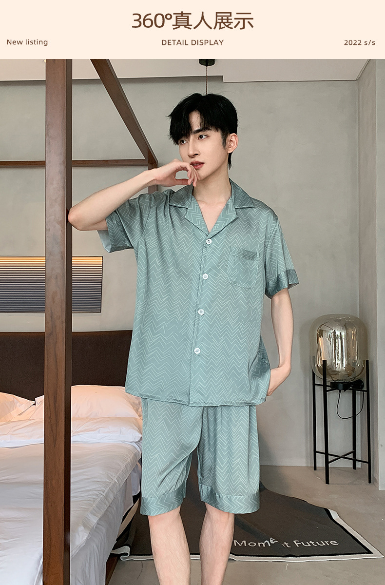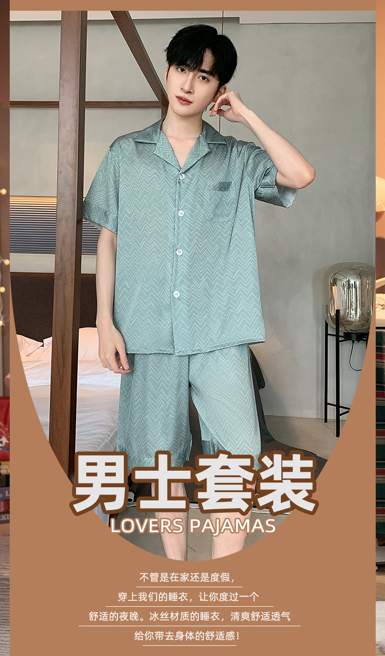 남성용 여름 잠옷, 아이스 실크, 플러스 사이즈, 뚱뚱한 사람들을 위한 큰 사이즈, 루즈핏, 2026년 신상 여름 반팔 반바지 세트, 얇은 스타일스토어 가기