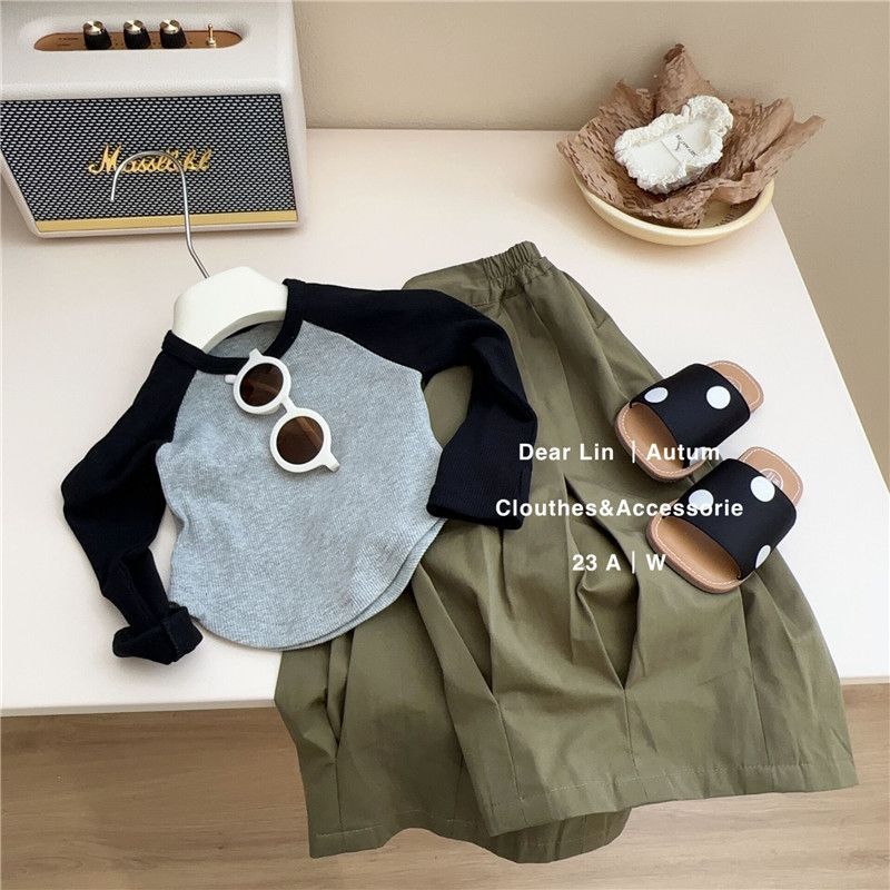 한국 스타일 라글란 소매 티셔츠 짧은 긴 소매 봄 새로운 한국 스타일 소녀 아기의 스타일리시 올매치 기본 Z010
