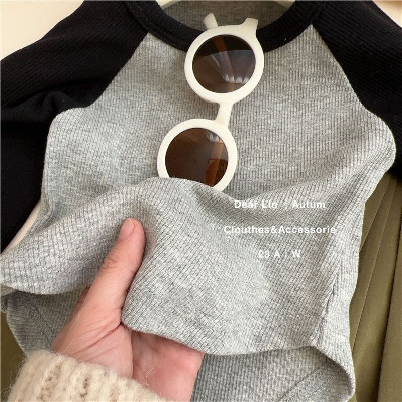 한국 스타일 라글란 소매 티셔츠 짧은 긴 소매 봄 새로운 한국 스타일 소녀 아기의 스타일리시 올매치 기본 Z010스토어 가기