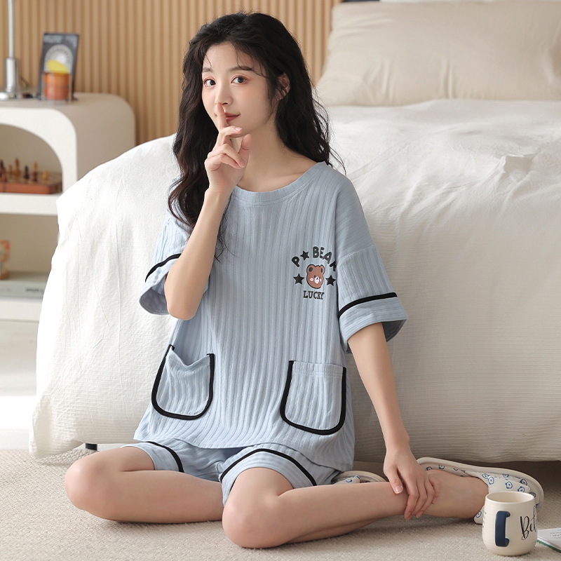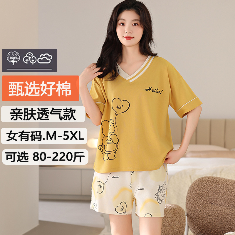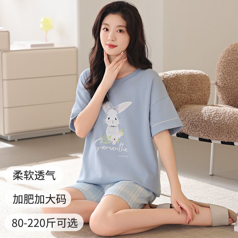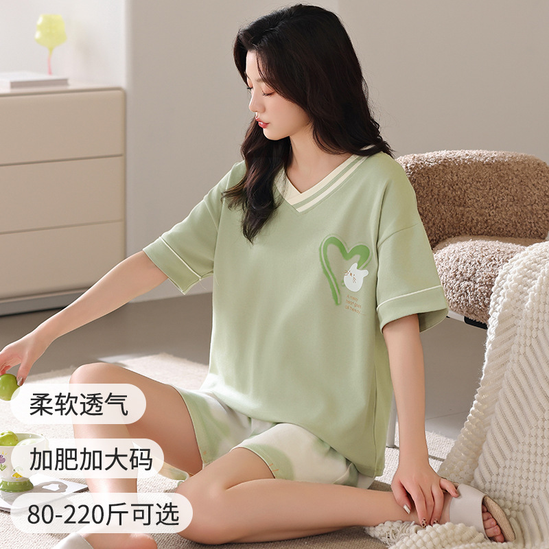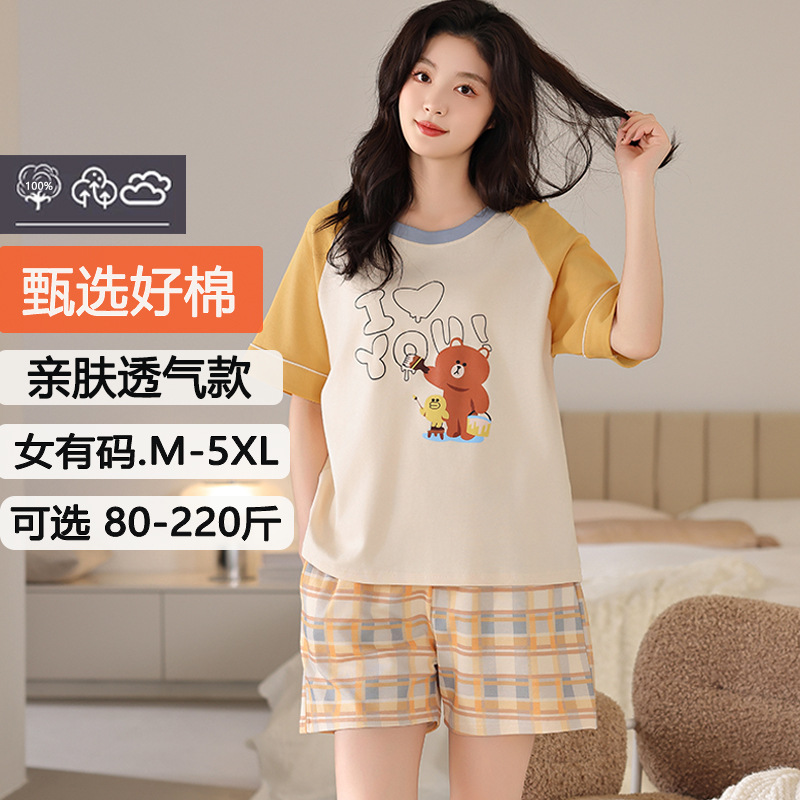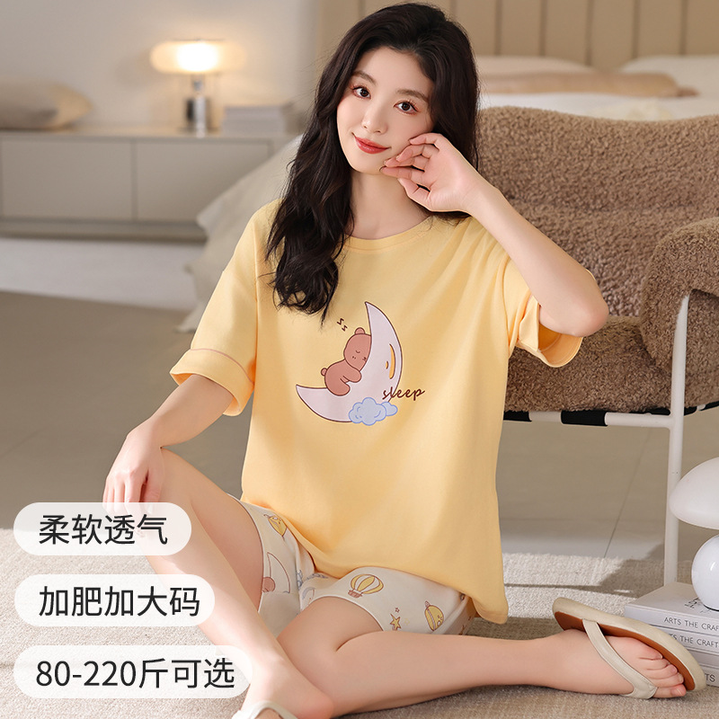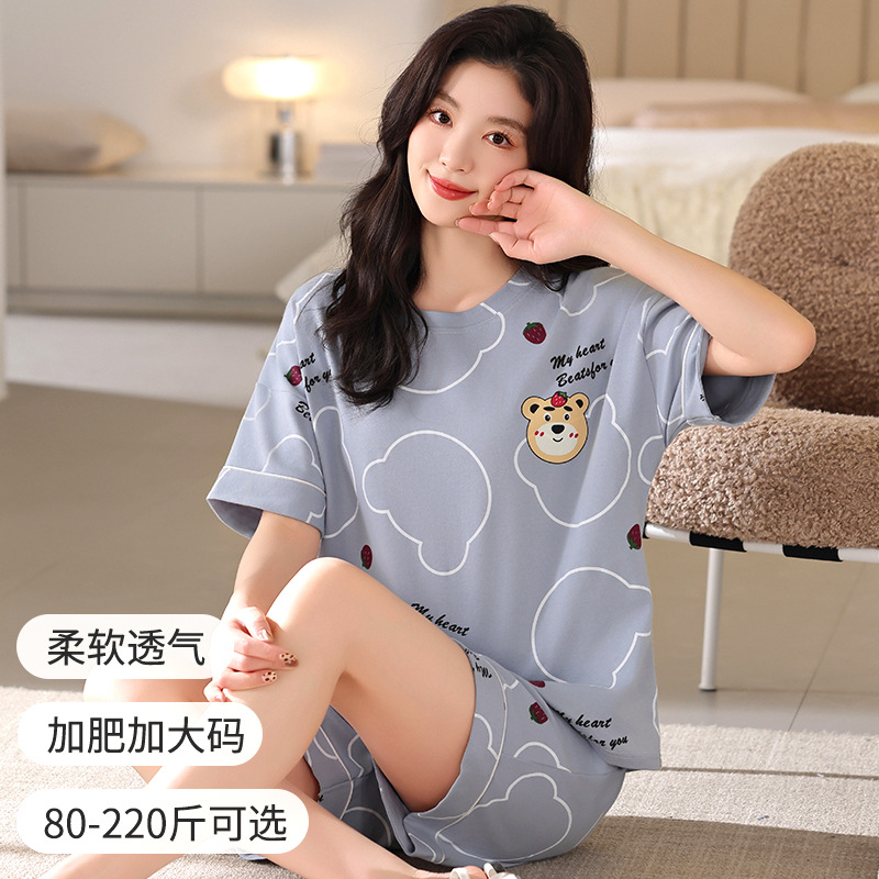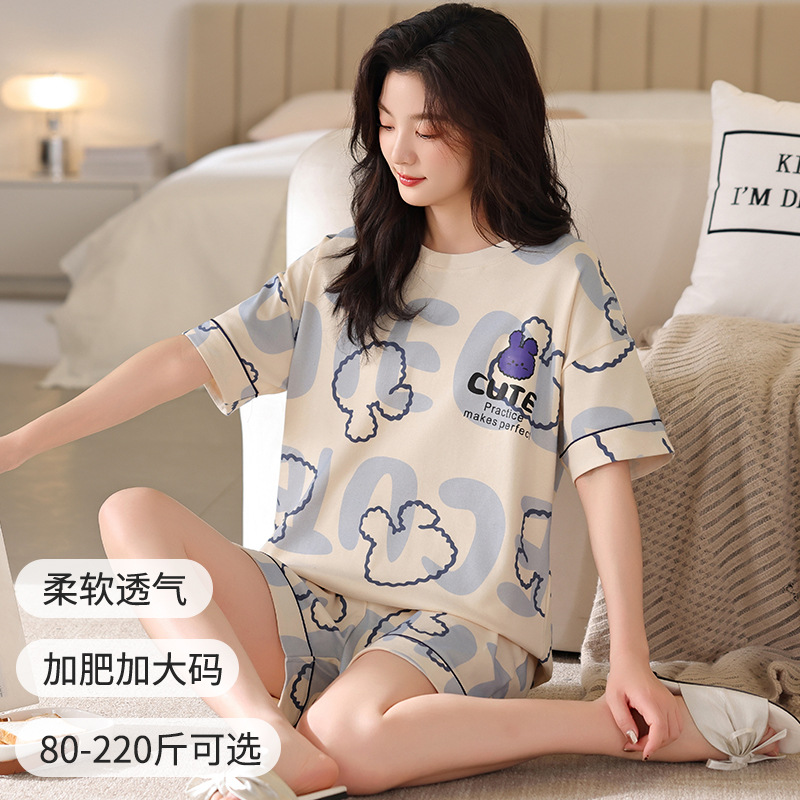 잠옷 여성 여름 순면 잠옷 캐주얼 세트 여름 반팔 반바지 새로운 도착 아웃웨어 대형 홈 의류 세트스토어 가기