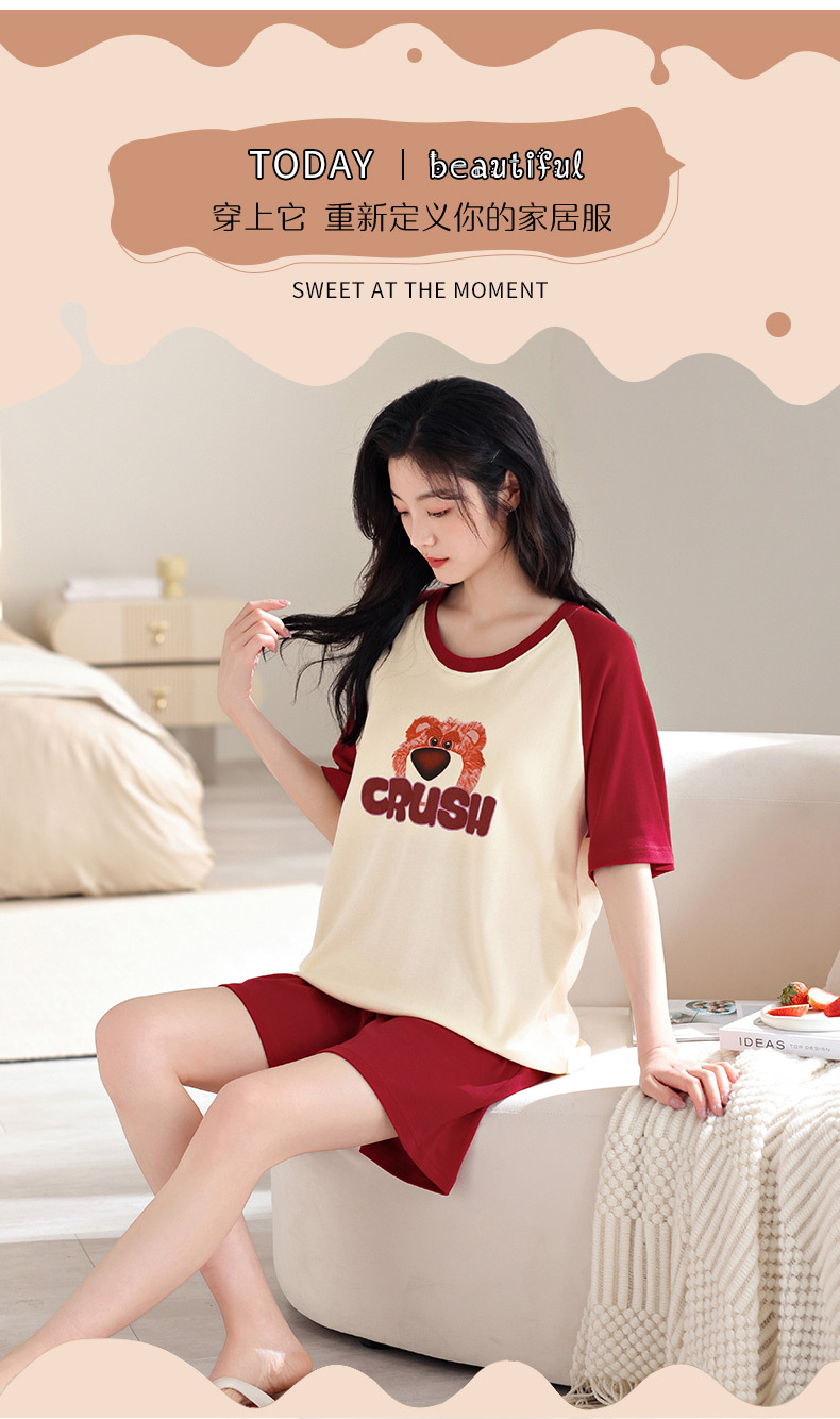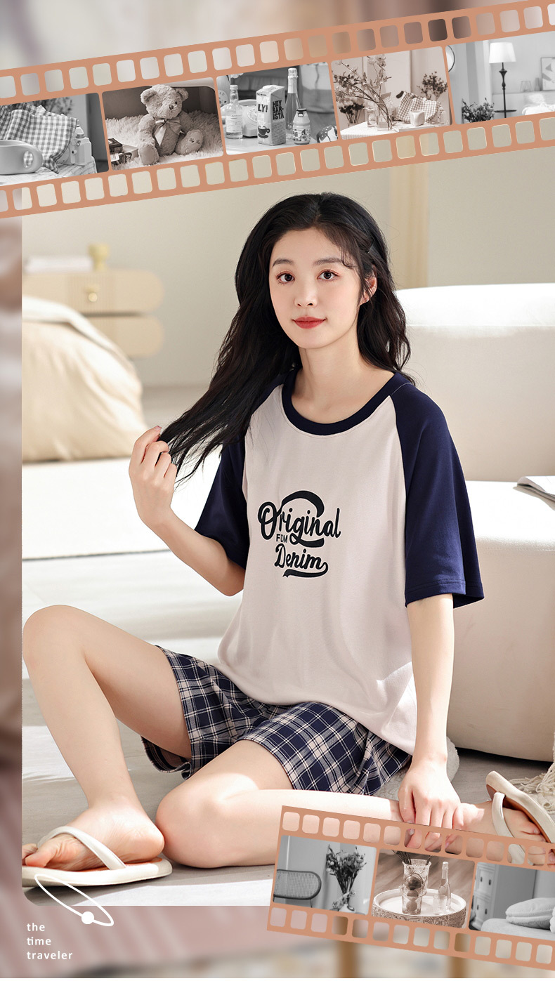 • XM6507 짧은 소매 반바지 세트 여성