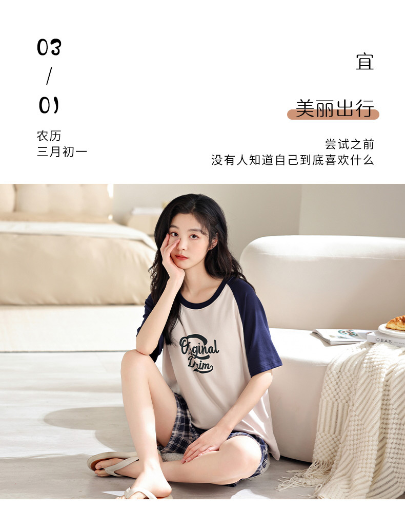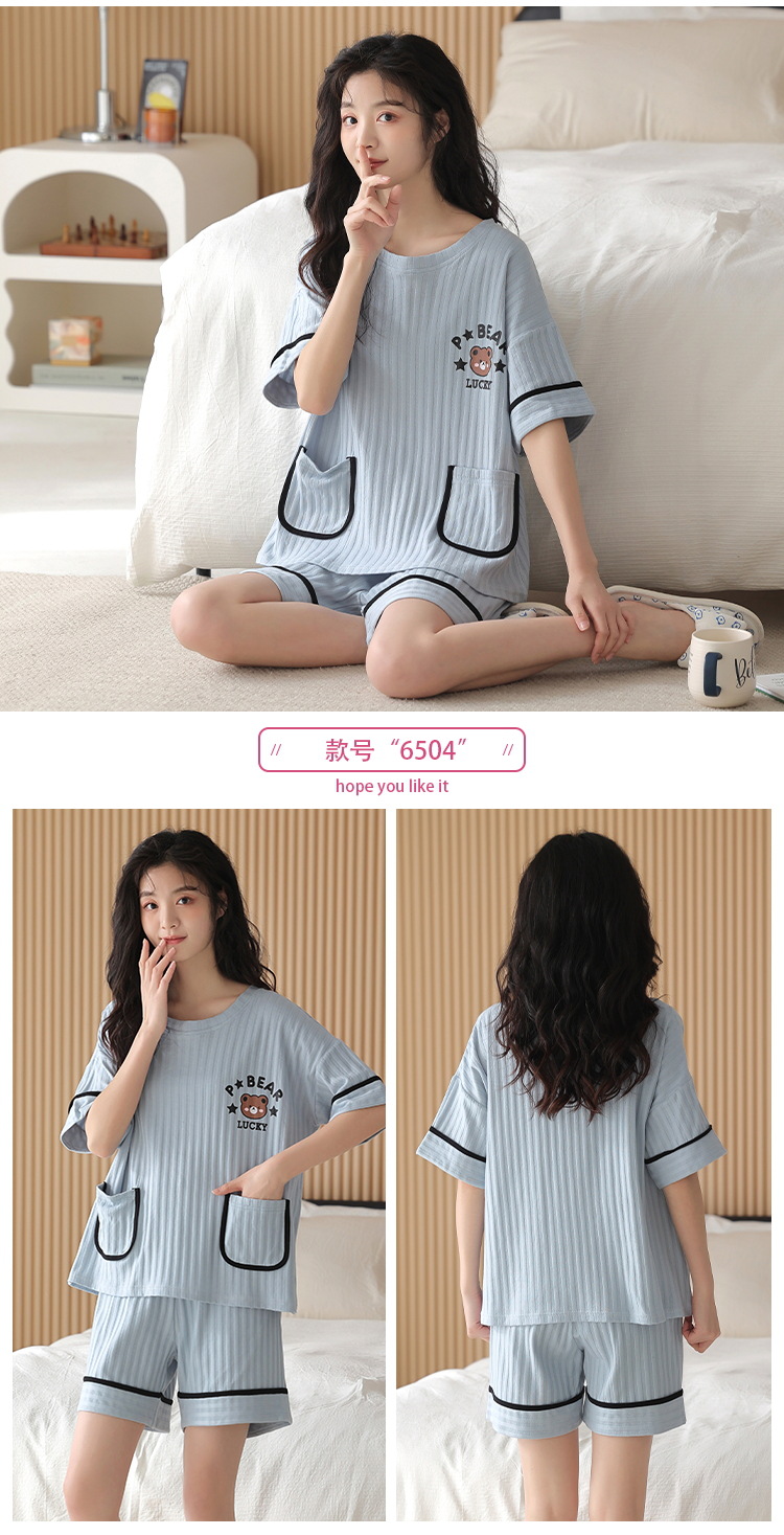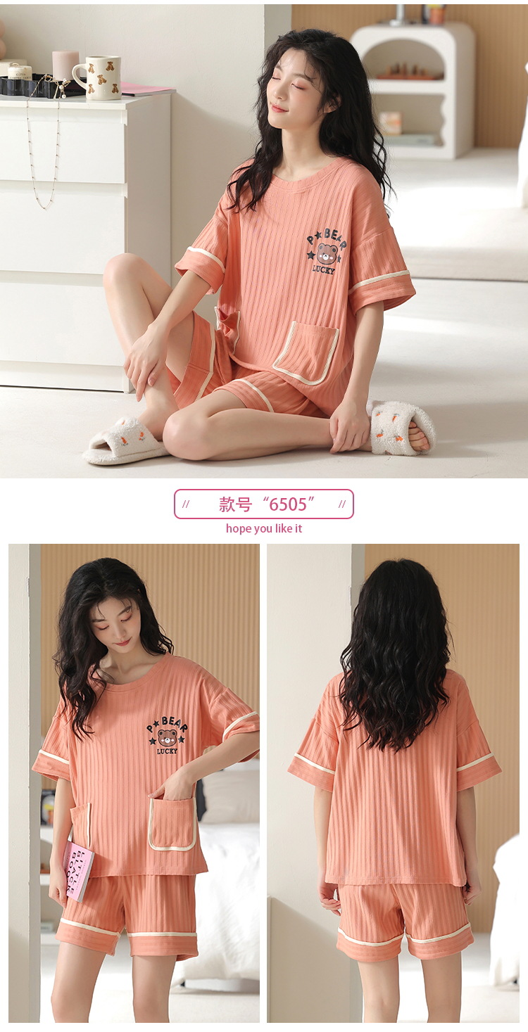 • XM6505 짧은 소매 반바지 세트 여성