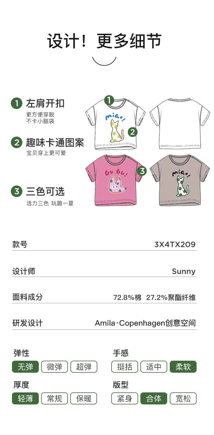【맞춤 제작】아밀라 아동복 2026 여름 신상 남아 여아 캐주얼 만화 캐릭터 한국 스타일 반팔 티셔츠