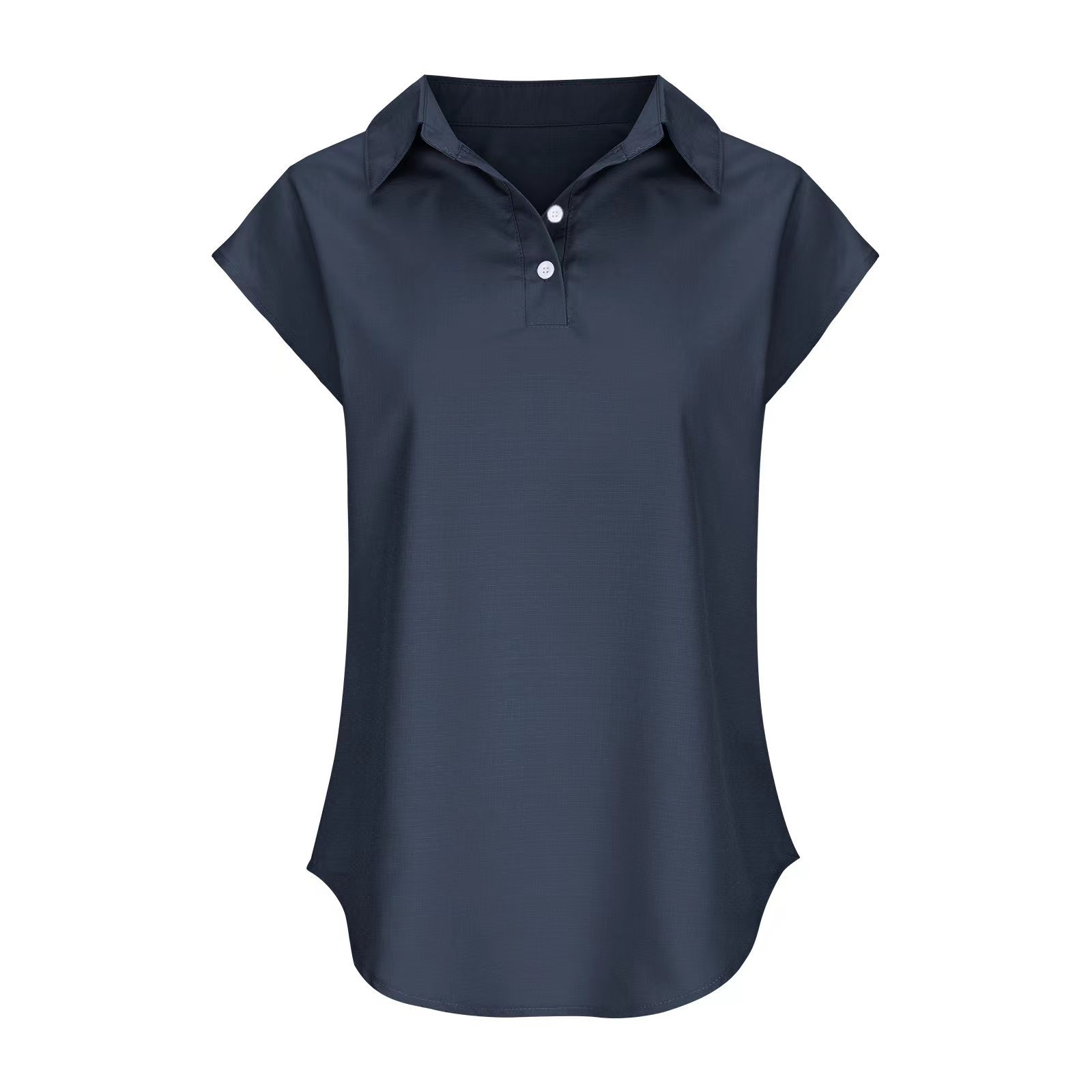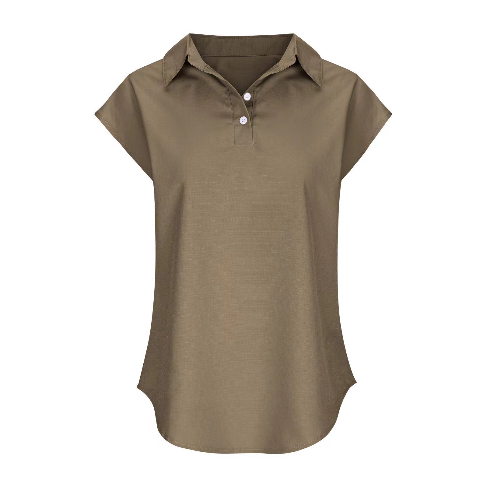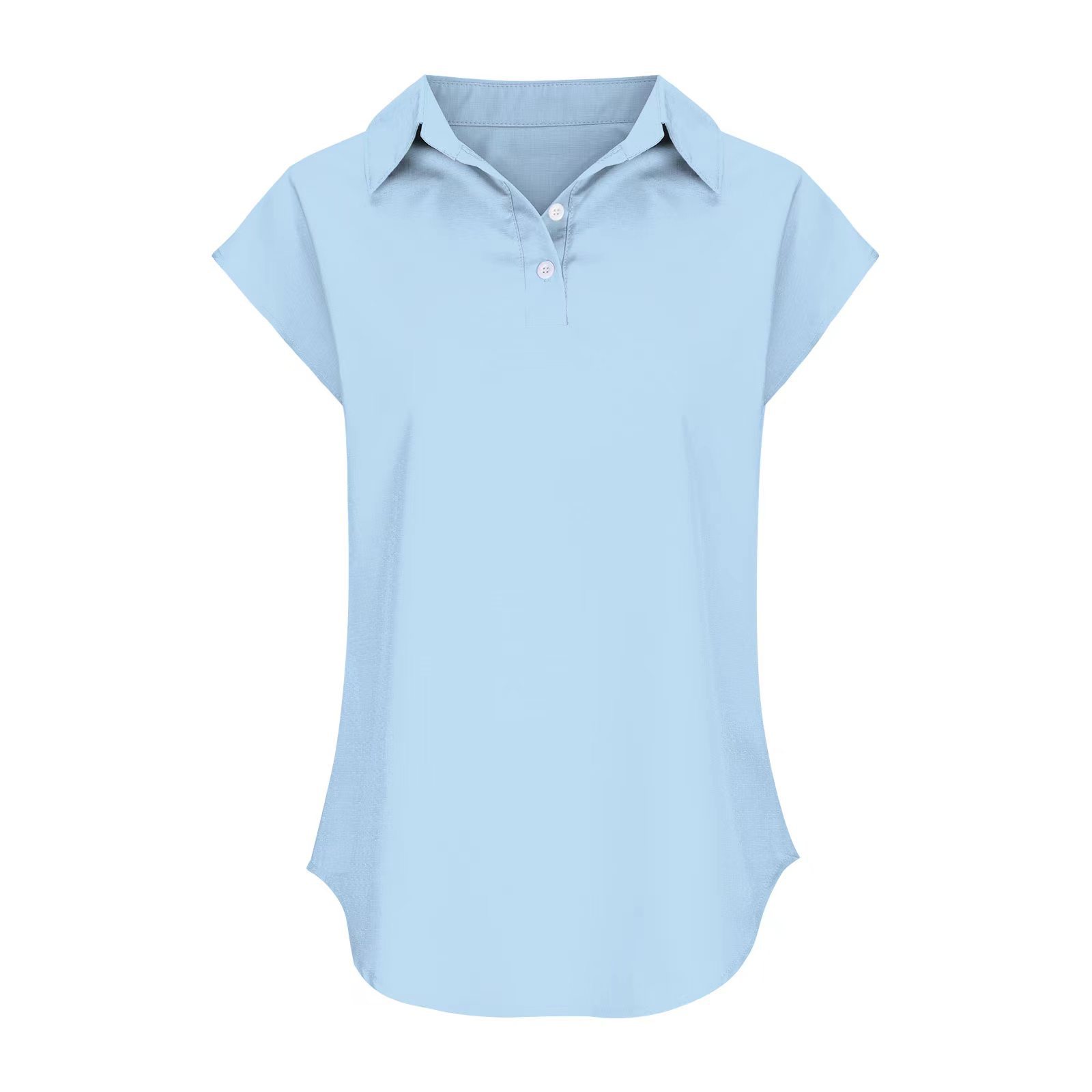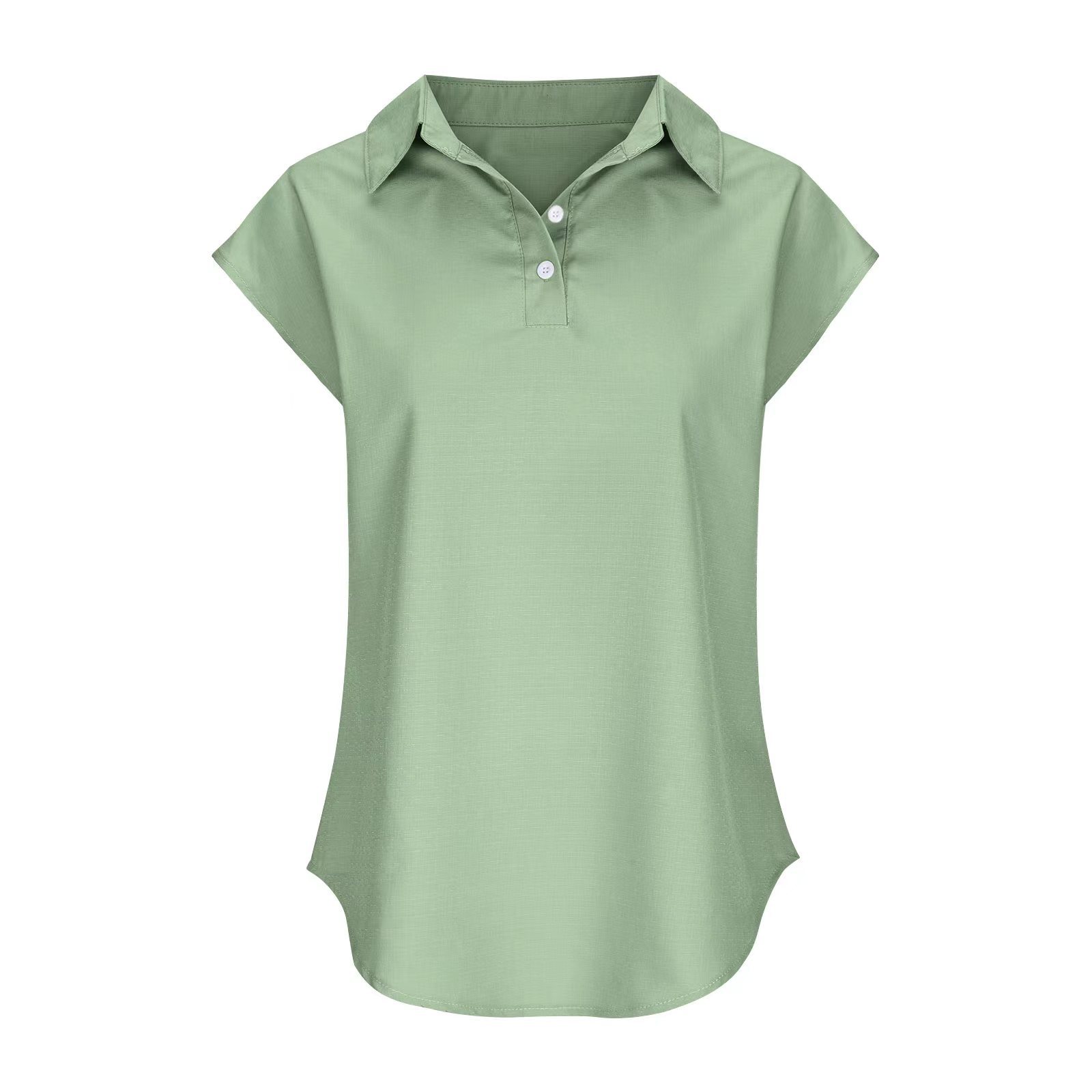 2024 여름 새로운 빈티지 코튼 리넨 셔츠 여성용 캐주얼 셔츠 칼라 버튼 짧은 소매 솔리드 컬러 코튼 리넨 짧은 소매