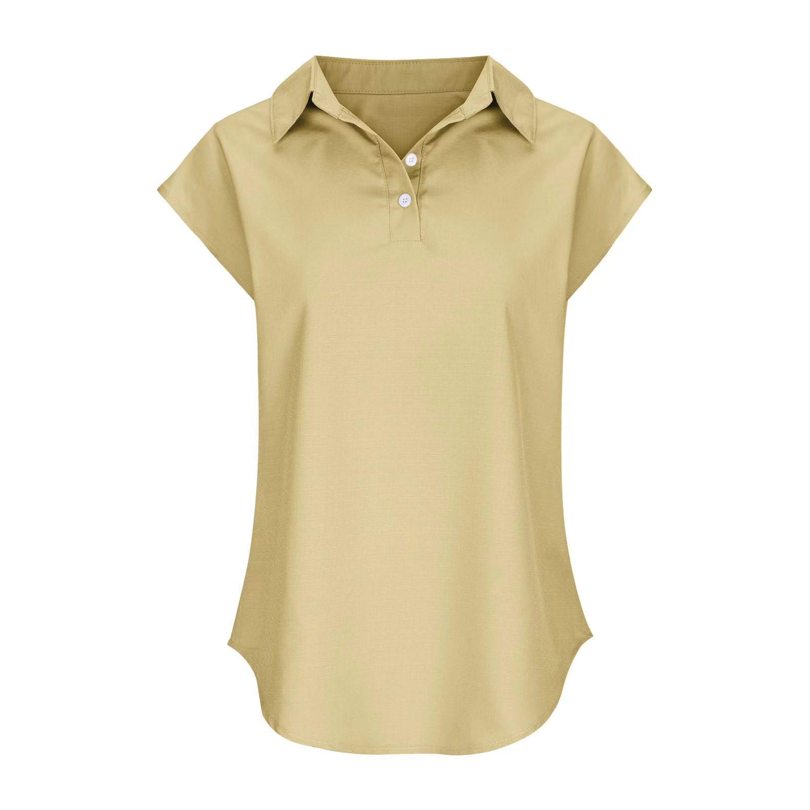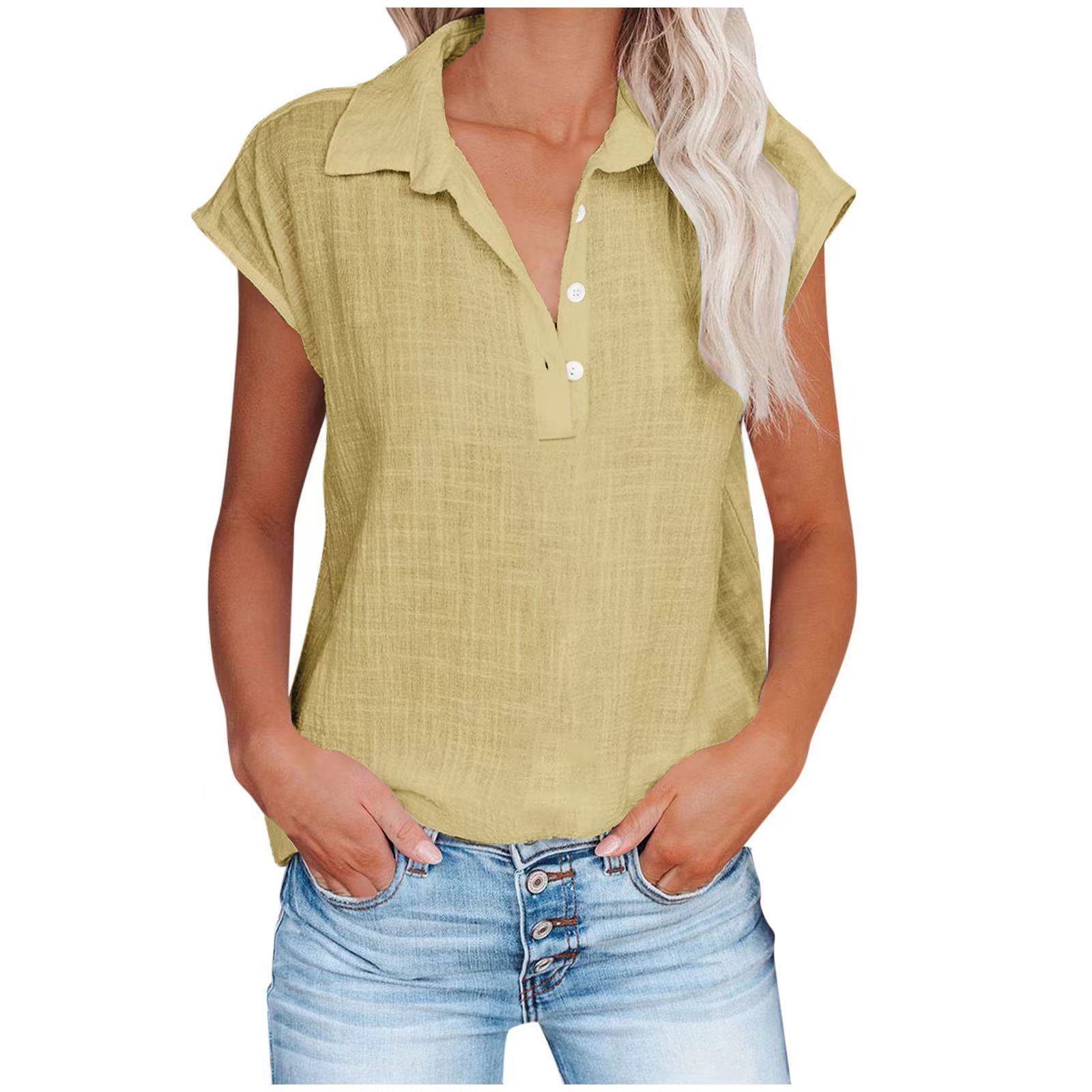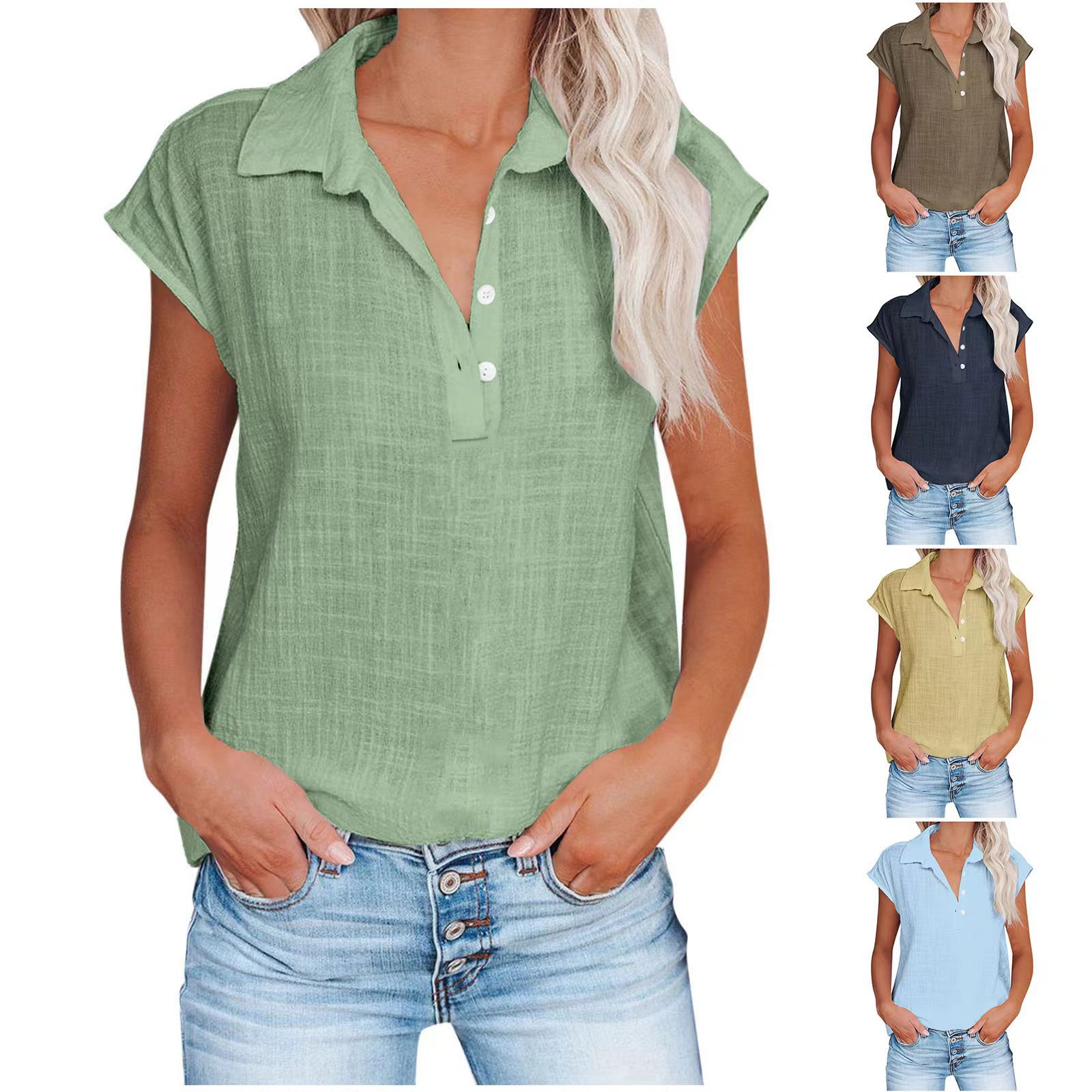 2024 여름 새로운 빈티지 코튼 리넨 셔츠 여성용 캐주얼 셔츠 칼라 버튼 짧은 소매 솔리드 컬러 코튼 리넨 짧은 소매스토어 가기