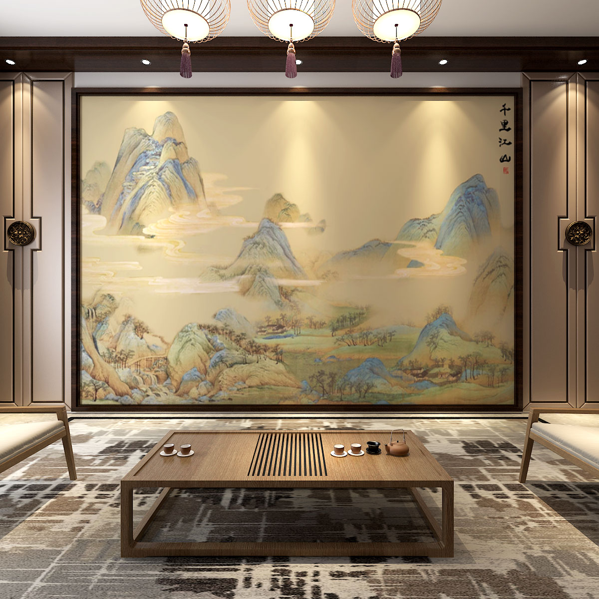 수천 마일의 강과 산 벽지 새로운 중국 그림 풍경 벽화 TV 배경 벽지 거실 벽을 덮고있는 티 룸 벽