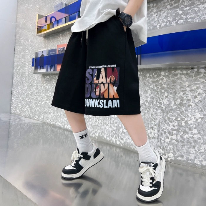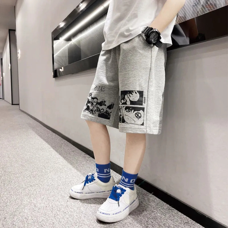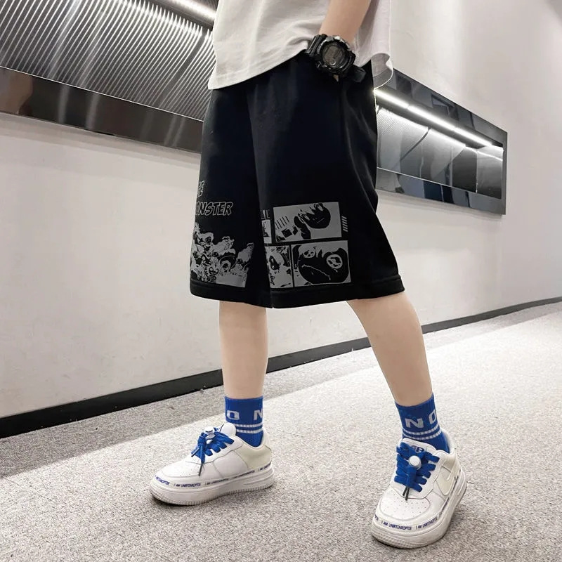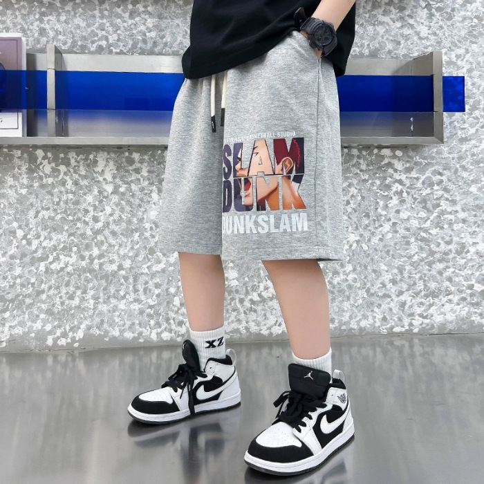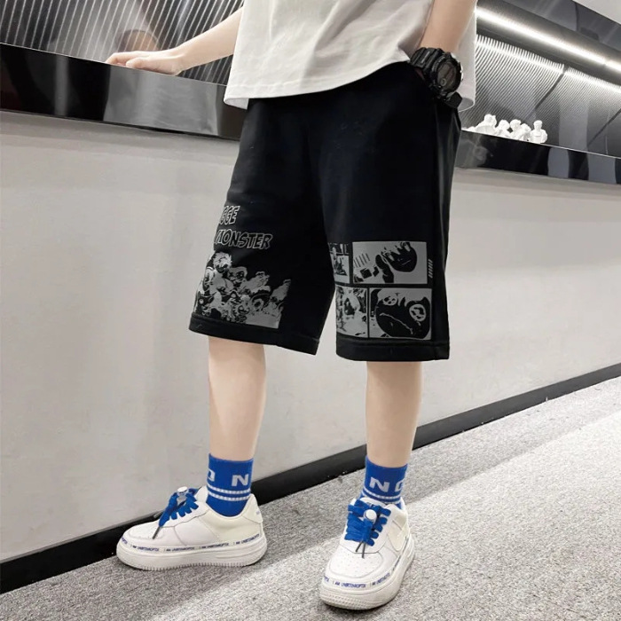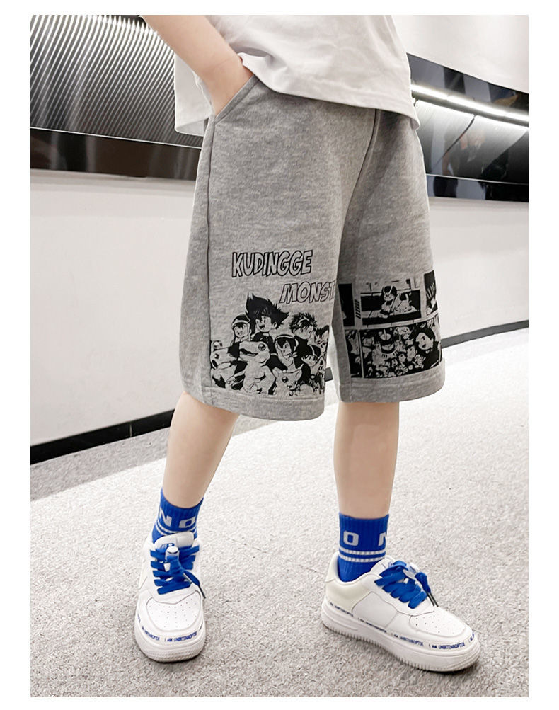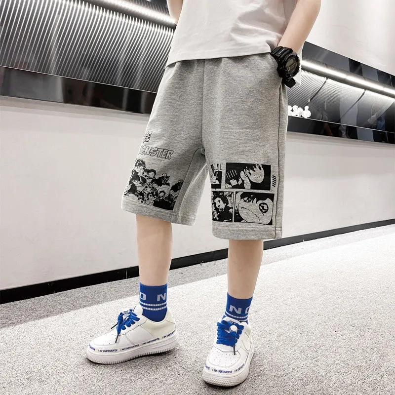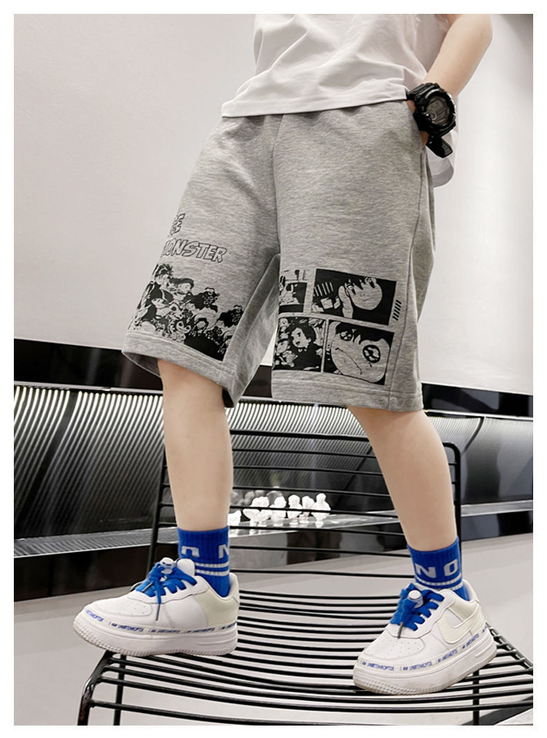 여름 새로운 소년 패션 캐주얼 스포츠 반바지 여름 느슨한 얇은 느슨한 허리 캐주얼 바지 초등 및 중등 학교 학생