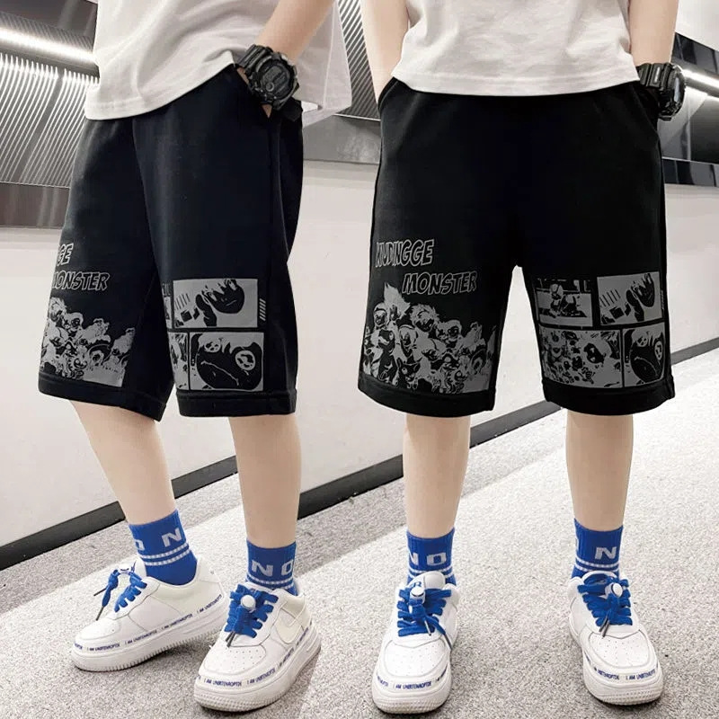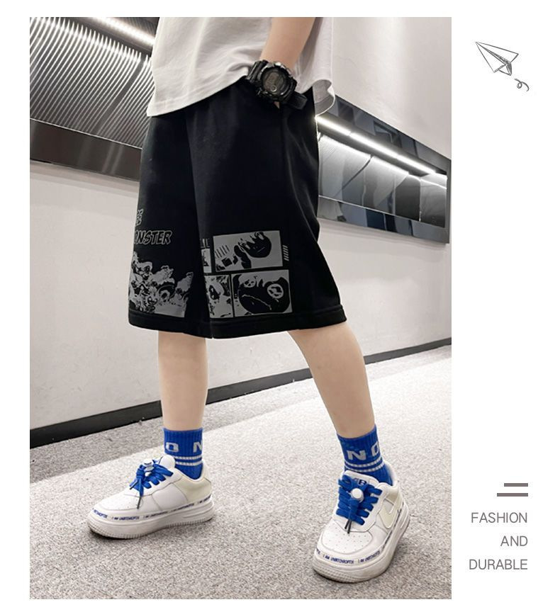 여름 새로운 소년 패션 캐주얼 스포츠 반바지 여름 느슨한 얇은 느슨한 허리 캐주얼 바지 초등 및 중등 학교 학생스토어 가기