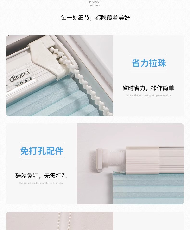 펀치없는 블라인드 벌집 커튼 당겨 비드 리프팅 사무실 발코니 거실 음영 절연 전기 오르간 커튼