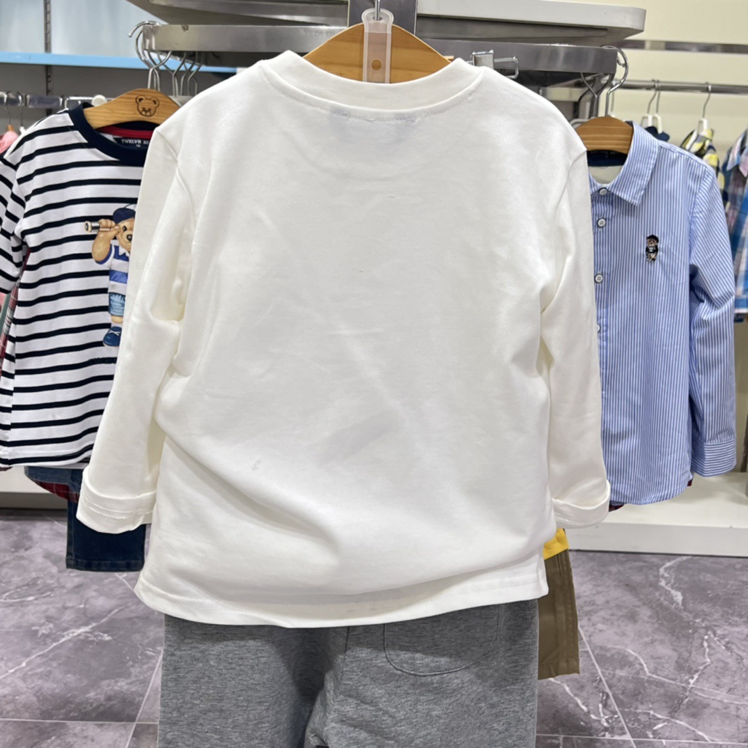 리틀 베어 아동복 봄 스타일 남아용 긴팔 흰색 티셔츠 LA241202K는 드롭 배송을 지원합니다