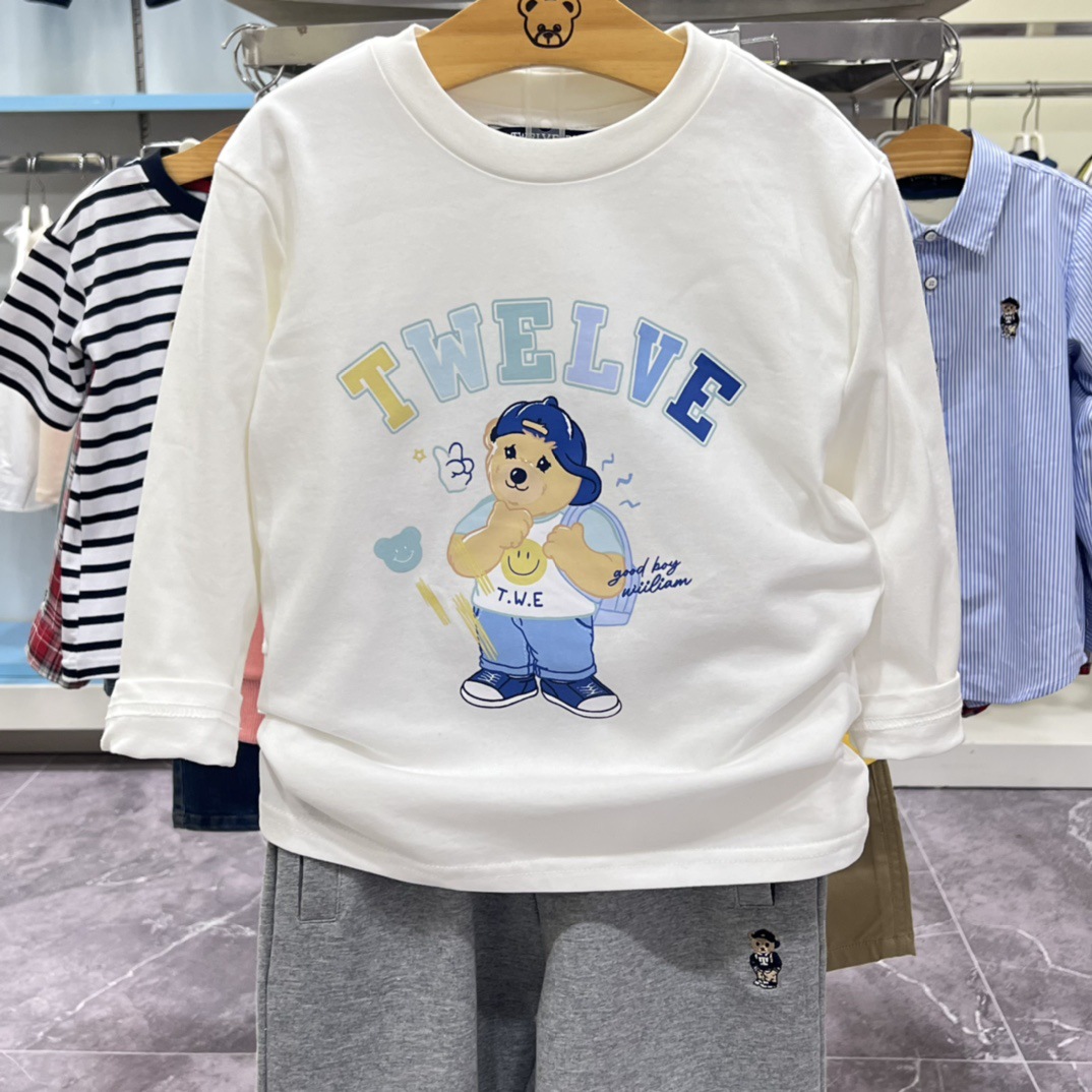 리틀 베어 아동복 봄 스타일 남아용 긴팔 흰색 티셔츠 LA241202K는 드롭 배송을 지원합니다스토어 가기