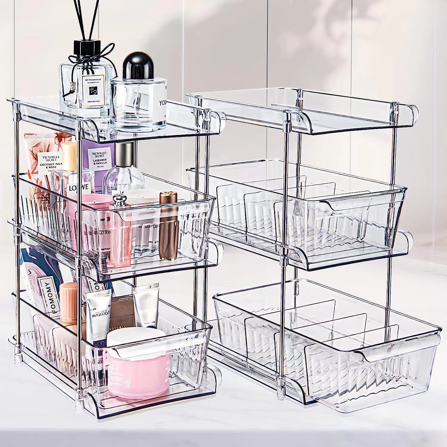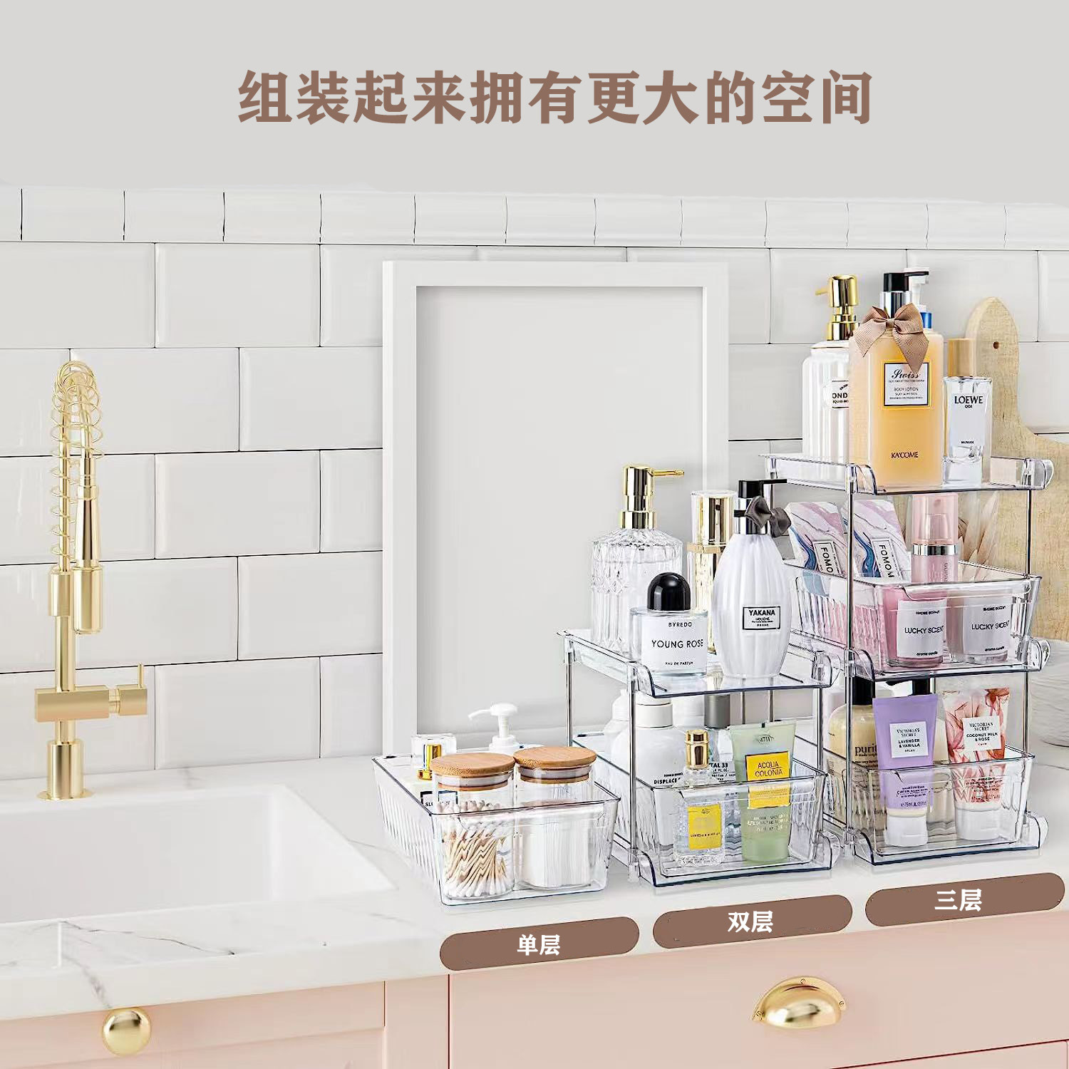 아마존 폭발성 주방 싱크 더블 레이어 스토리지 랙 욕실 서랍 다기능 스토리지 랙