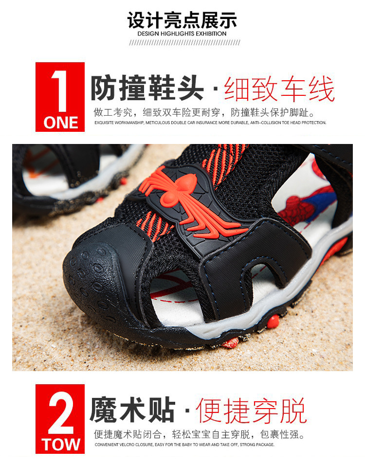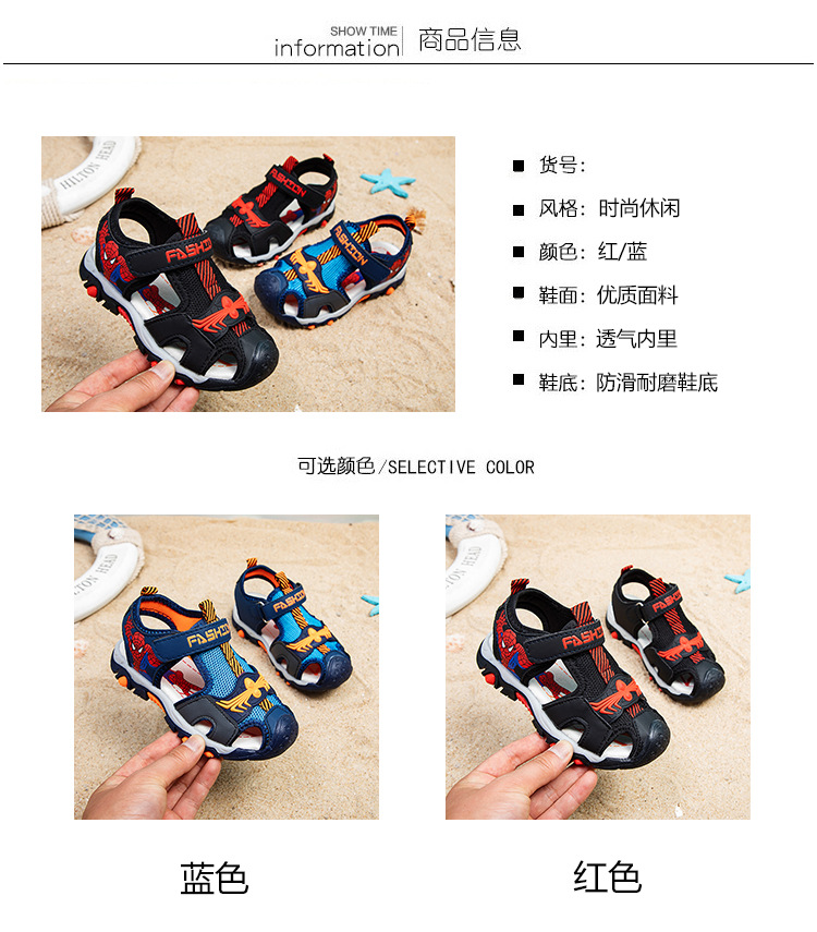 어린이 샌들 2025 여름 신상 청소년 샌들 남아 만화 캐릭터 드롭쉬핑 바오터우 비치 슈즈 매직