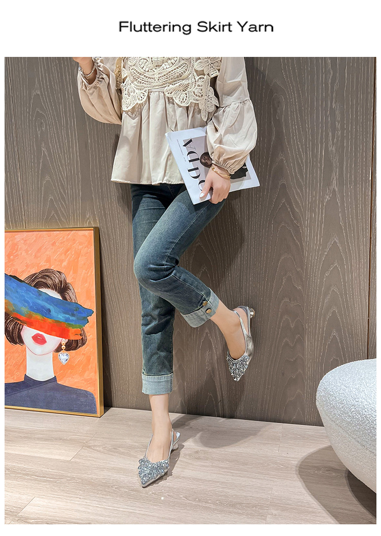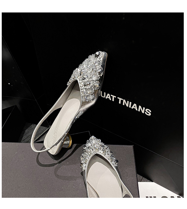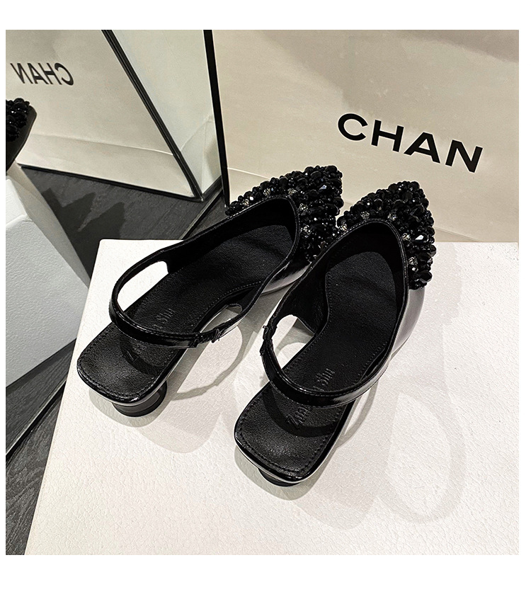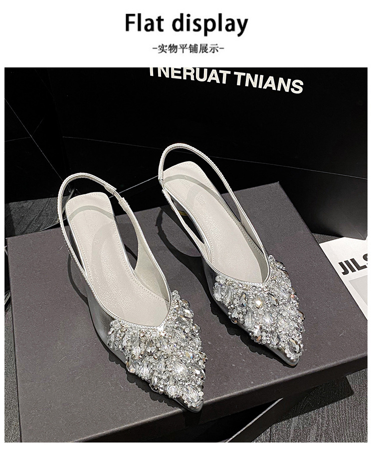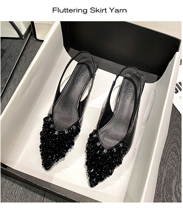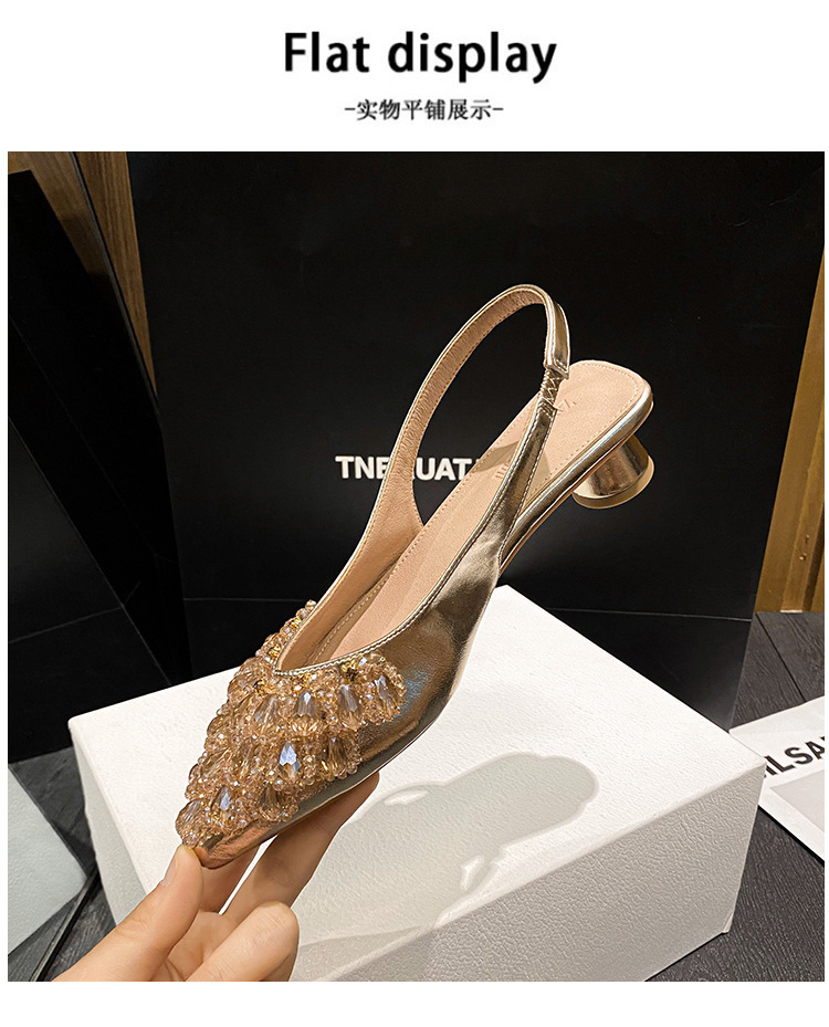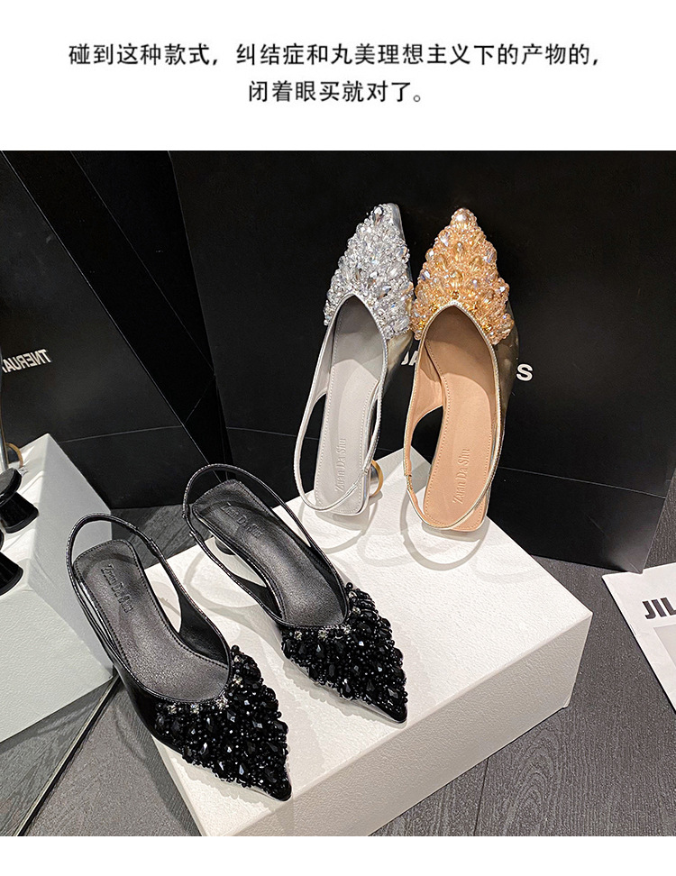 여성용 프렌치 스타일 두꺼운 굽 미드힐 토캡 샌들, 2025 신상 모델, 라인스톤 포인티드 토 싱글 슈즈, 여성용 대형 사이즈 41-43