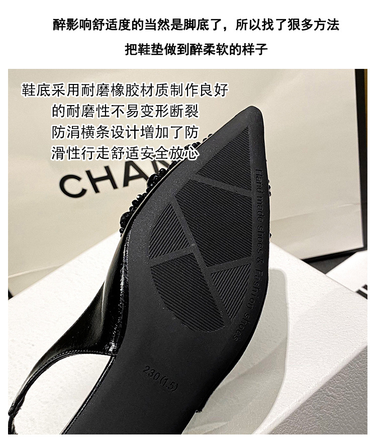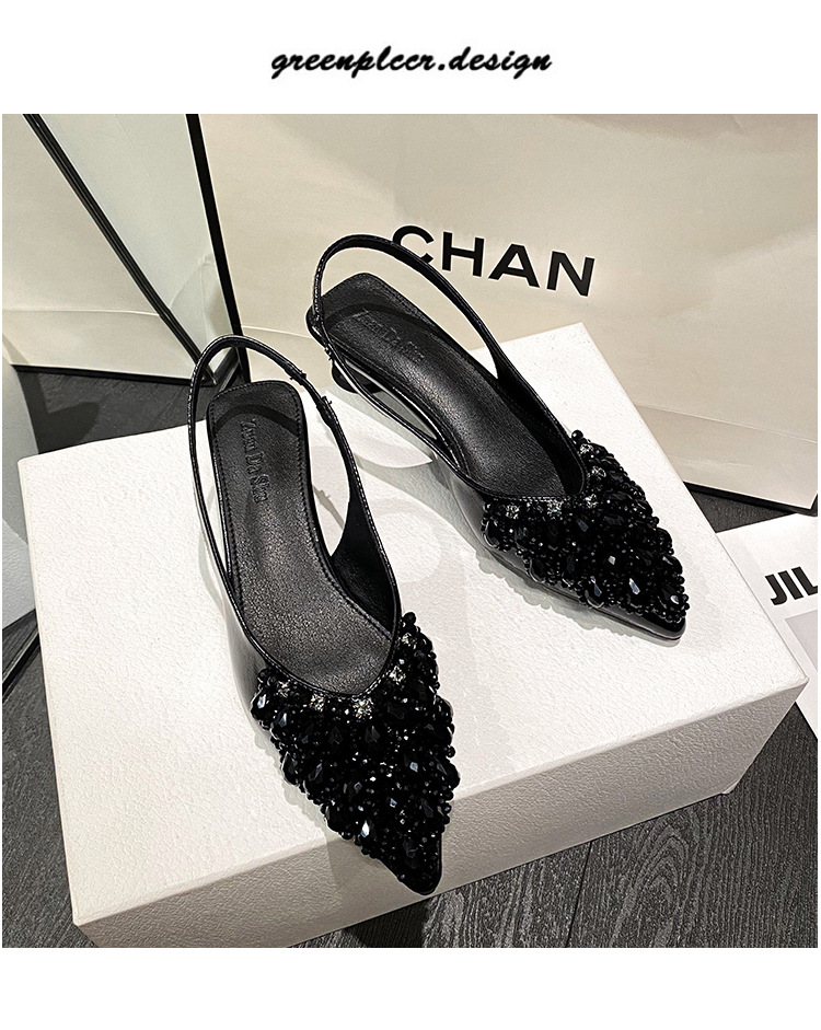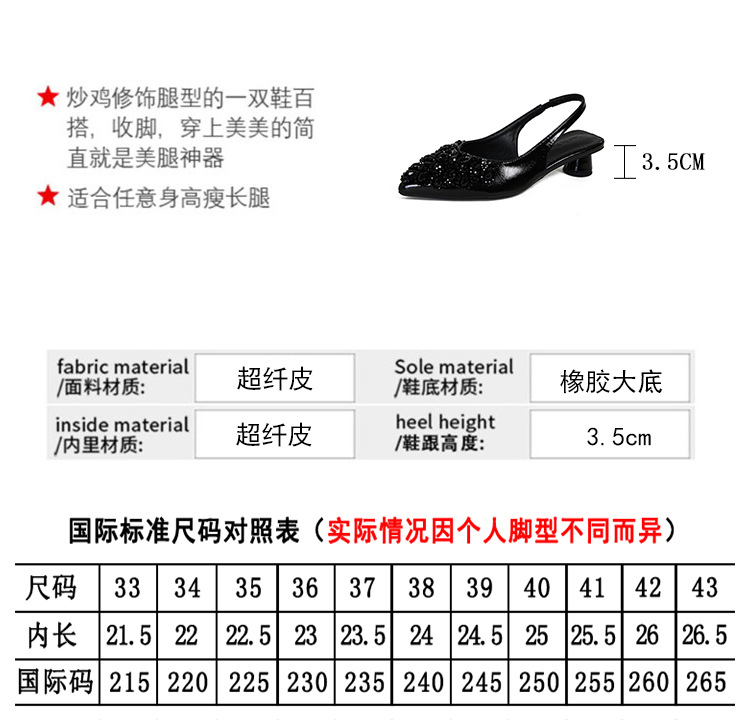 여성용 프렌치 스타일 두꺼운 굽 미드힐 토캡 샌들, 2025 신상 모델, 라인스톤 포인티드 토 싱글 슈즈, 여성용 대형 사이즈 41-43스토어 가기