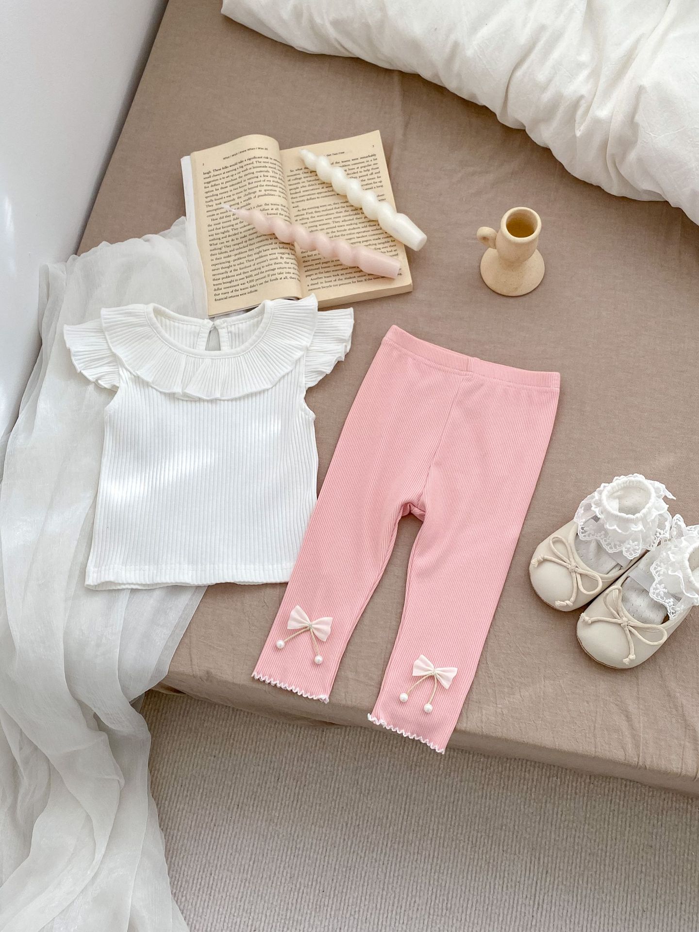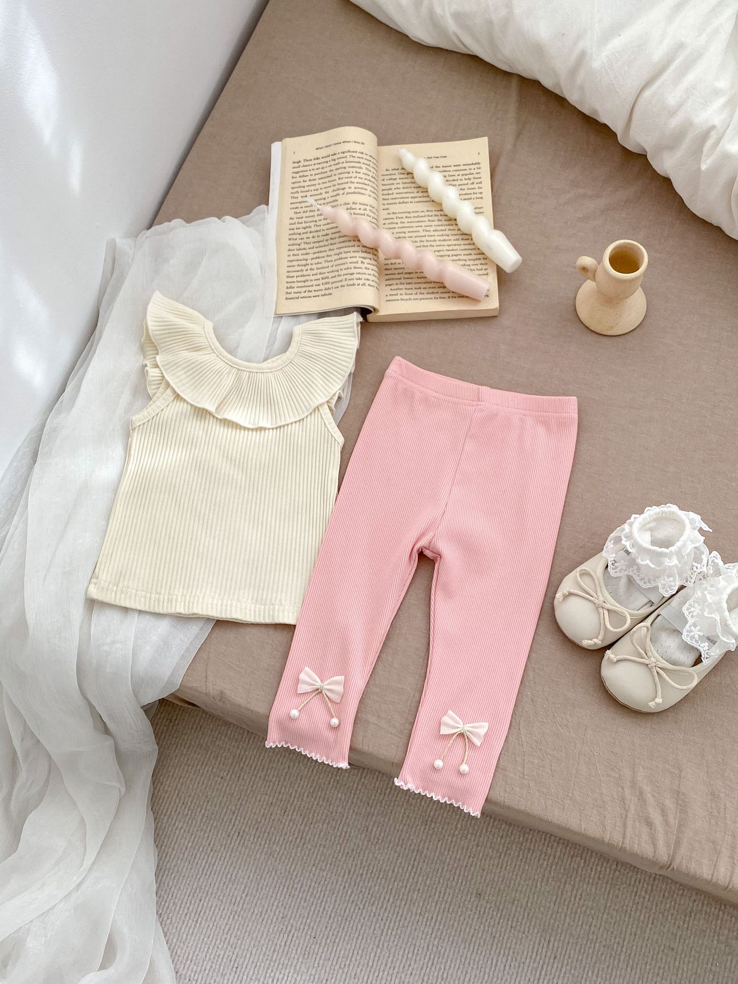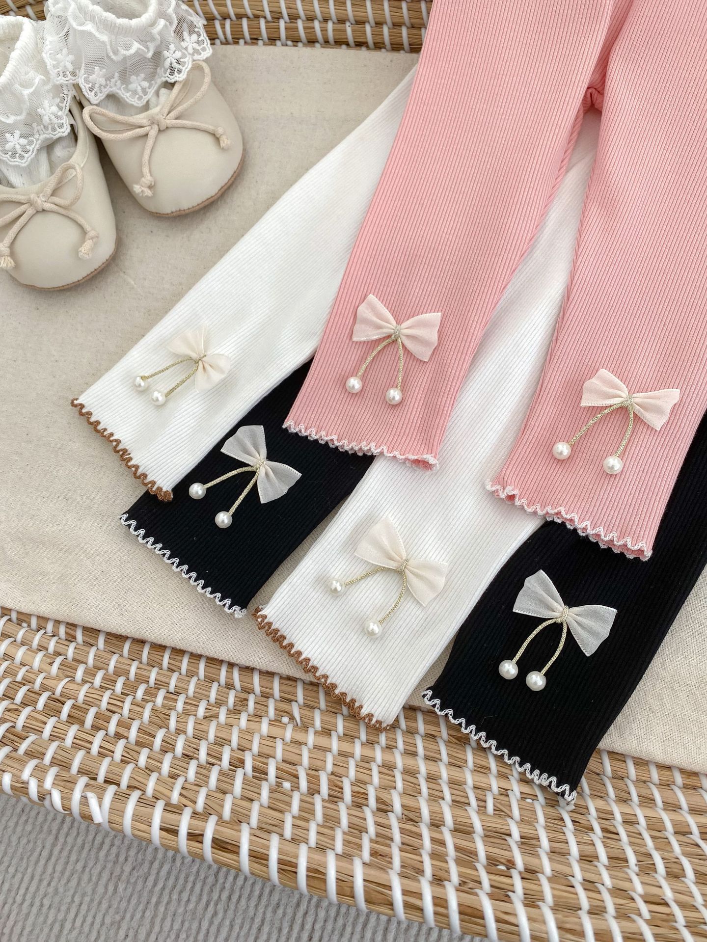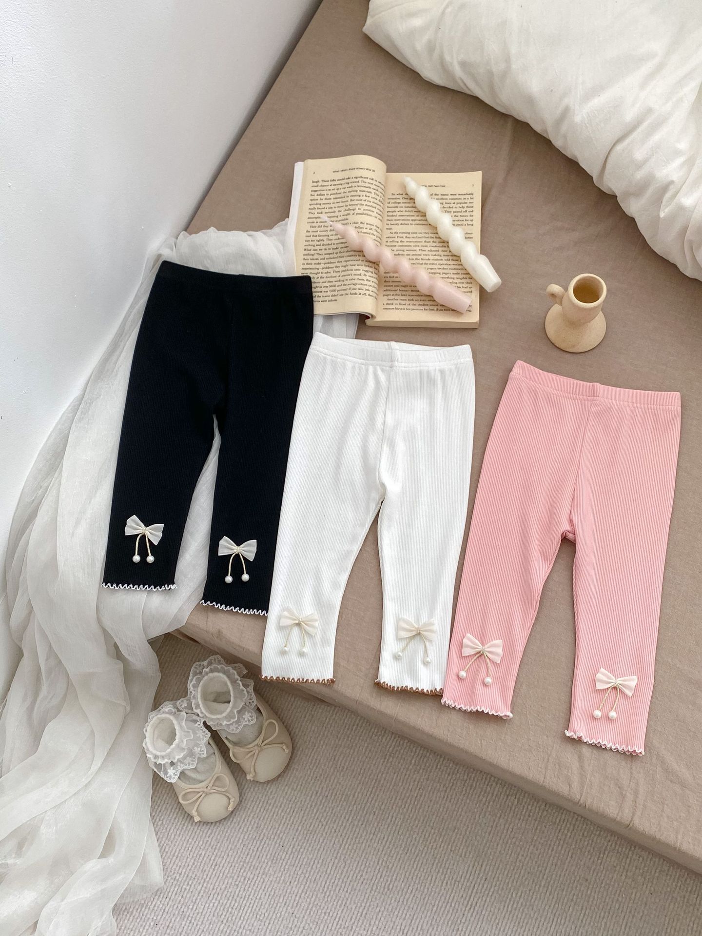 아기 소녀의 레깅스 여름 얇은 어린이 바지 외부 착용 1-3 세 아기 멋진 소녀 Bowknot 바지