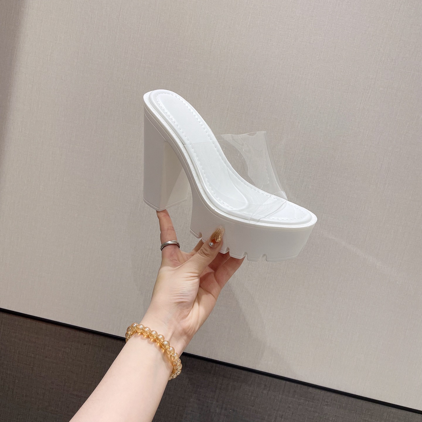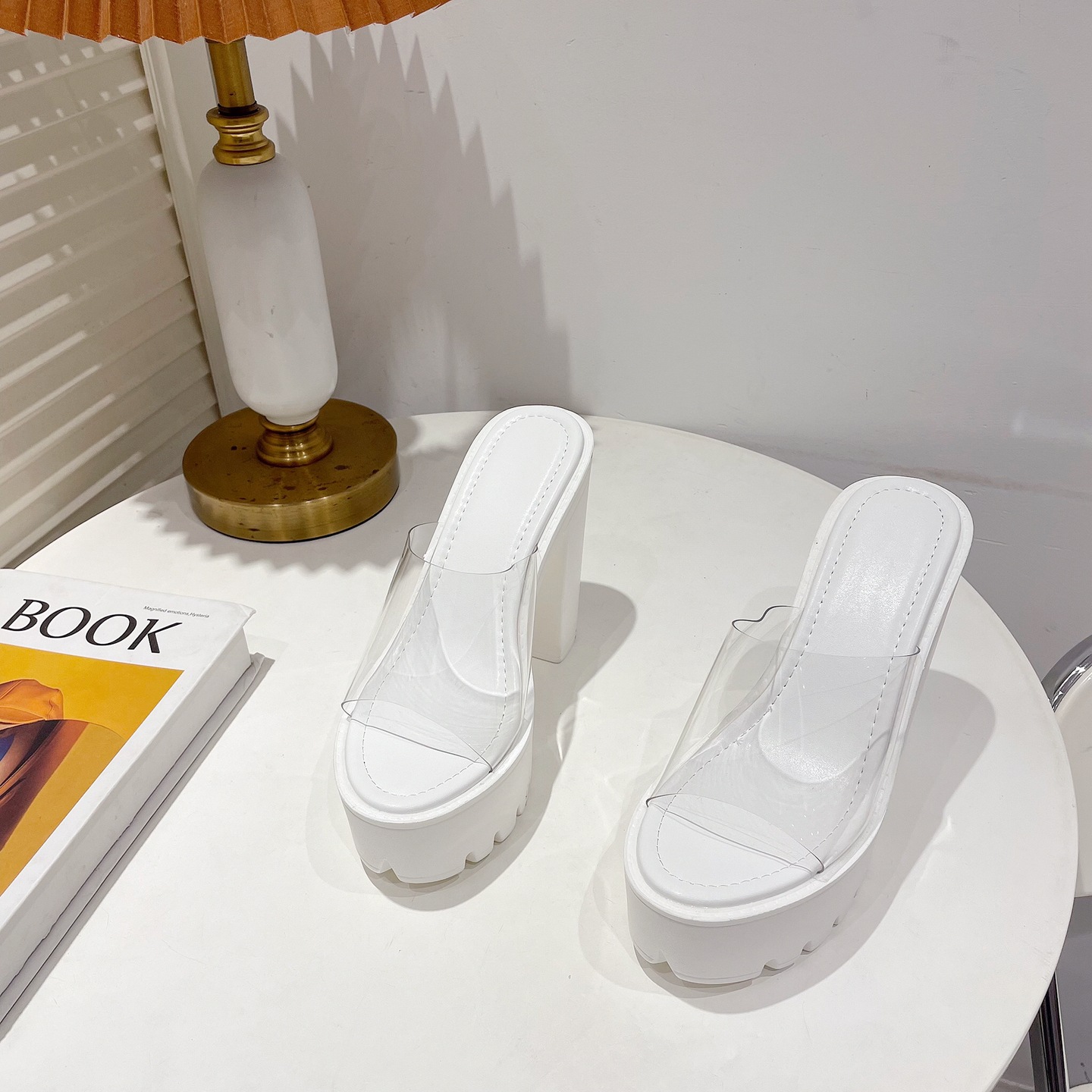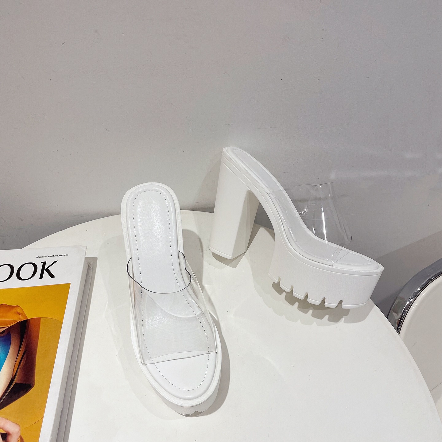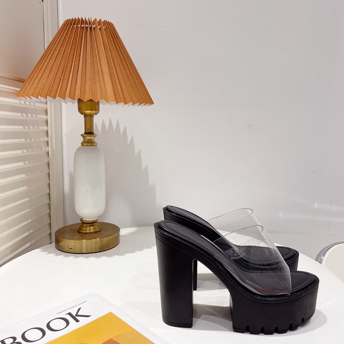 두꺼운 힐 슈퍼 하이힐 14CM 섹시 플랫폼 플랫폼 물고기 입 샌들 투명 필름 비 슬립 슬리퍼 여성용스토어 가기