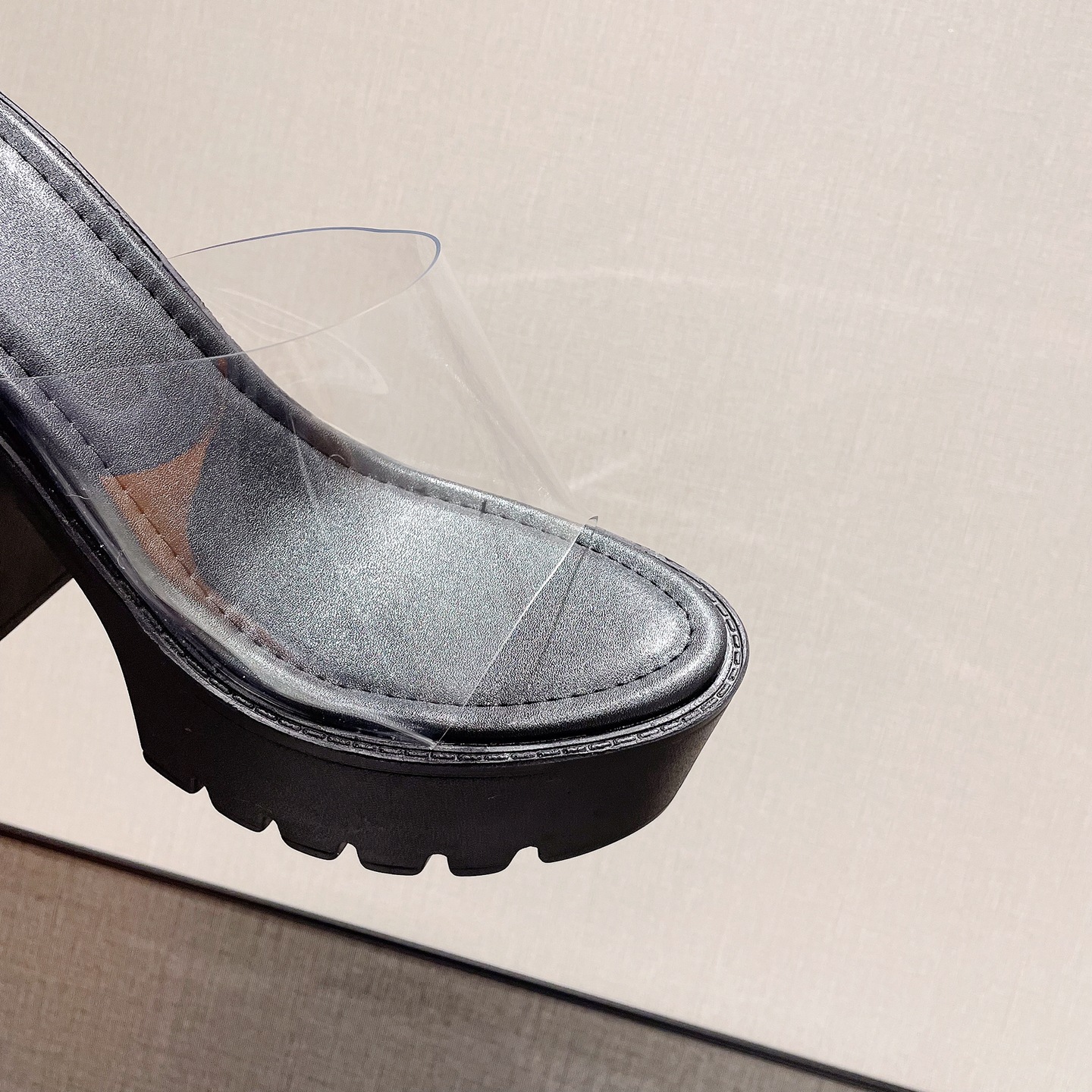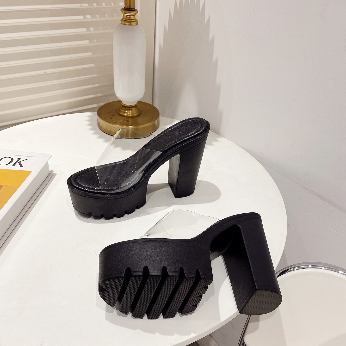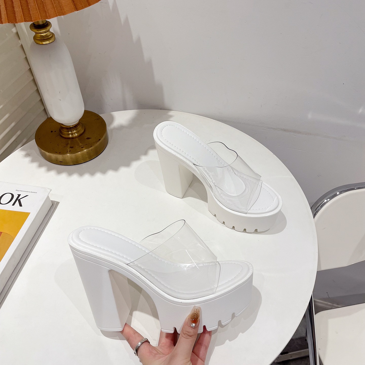 두꺼운 힐 슈퍼 하이힐 14CM 섹시 플랫폼 플랫폼 물고기 입 샌들 투명 필름 비 슬립 슬리퍼 여성용스토어 가기