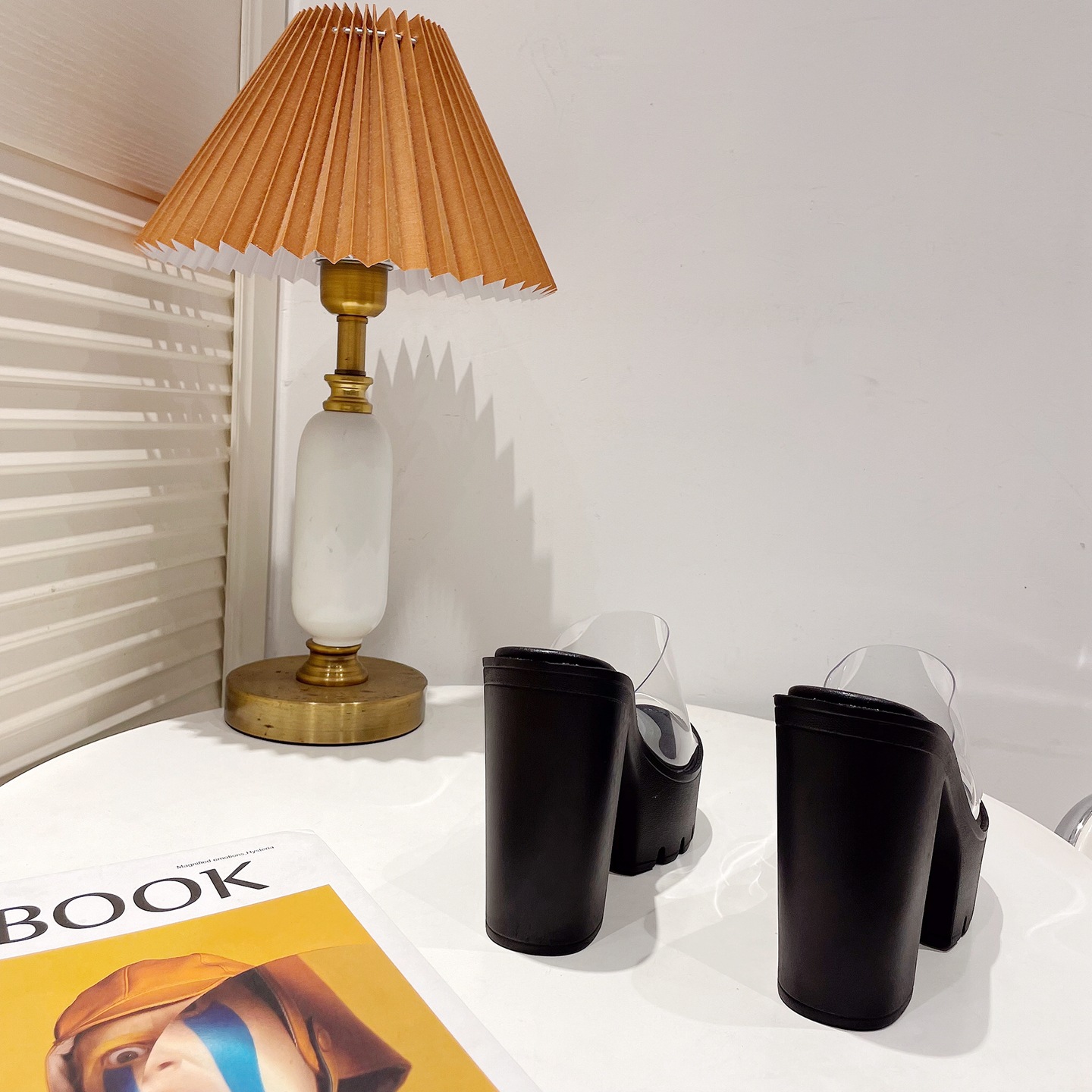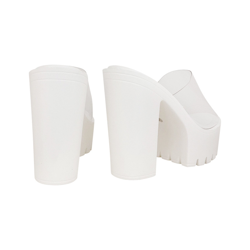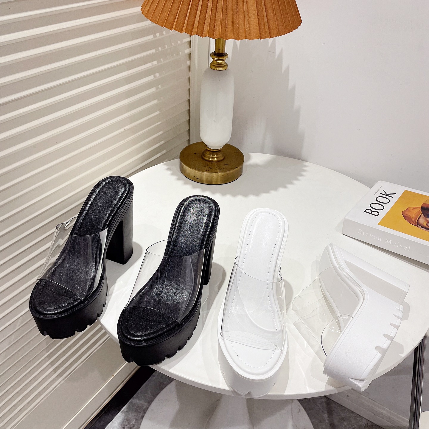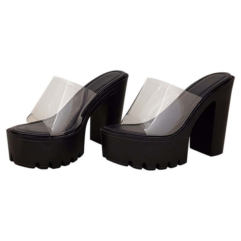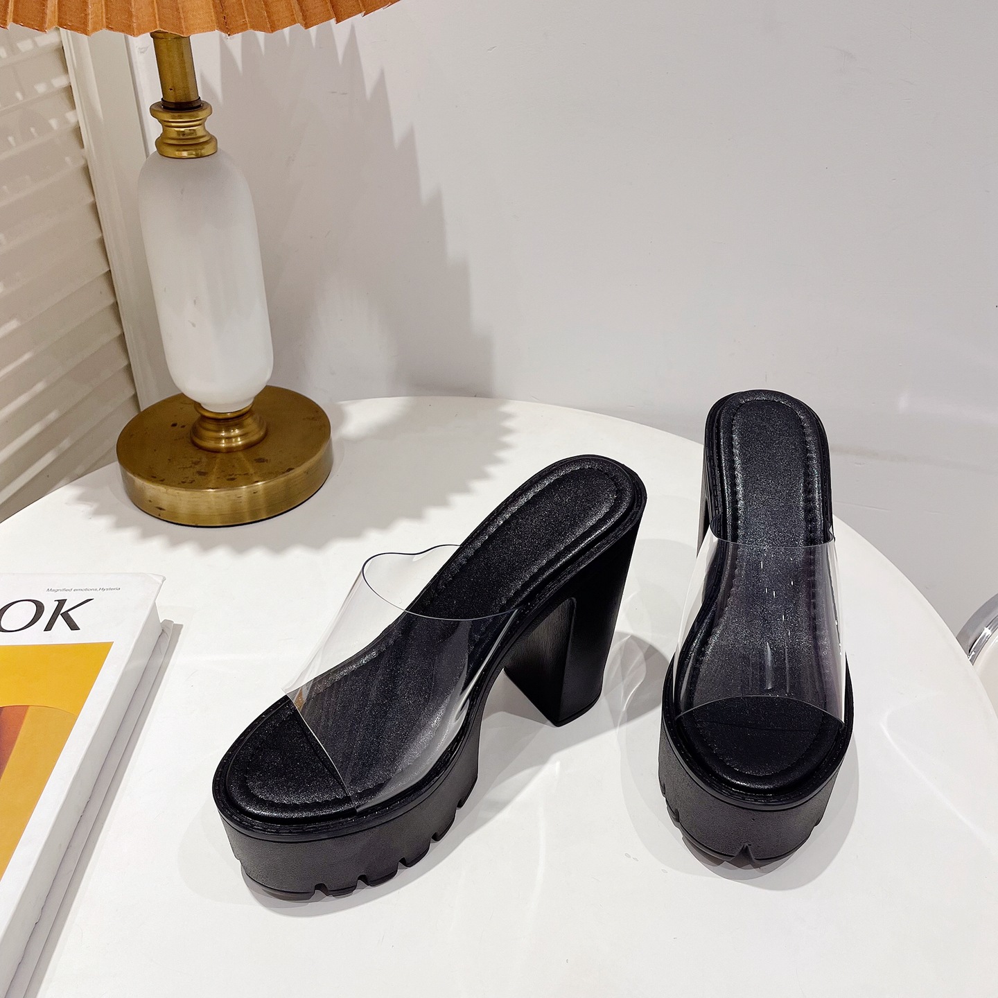 두꺼운 힐 슈퍼 하이힐 14CM 섹시 플랫폼 플랫폼 물고기 입 샌들 투명 필름 비 슬립 슬리퍼 여성용스토어 가기