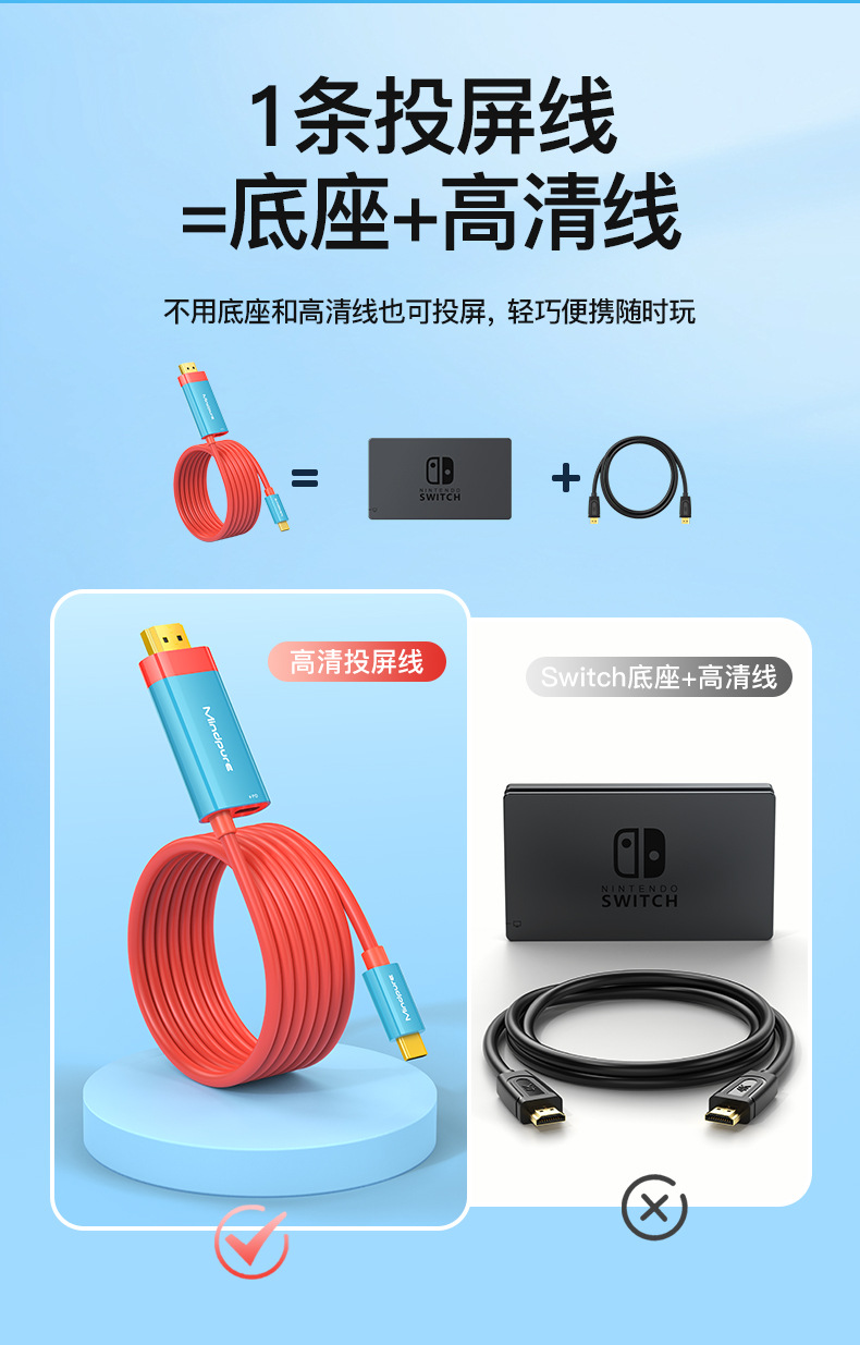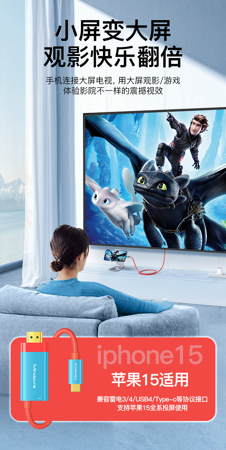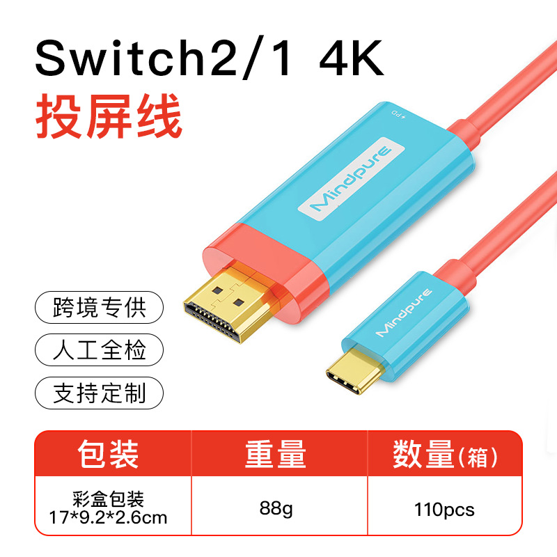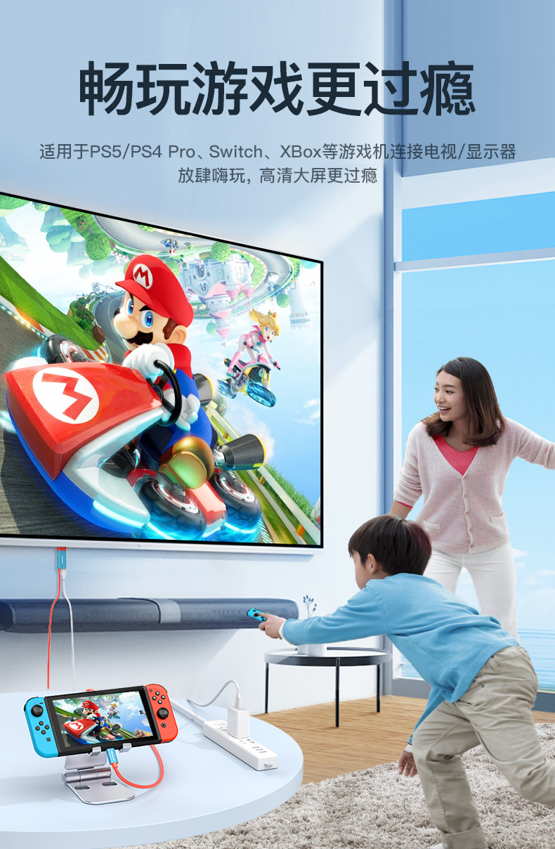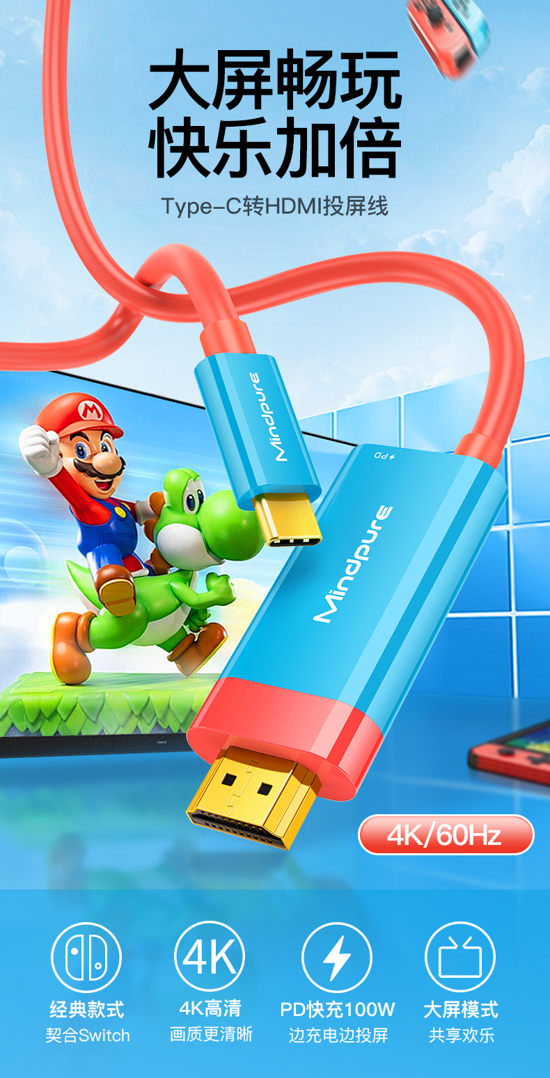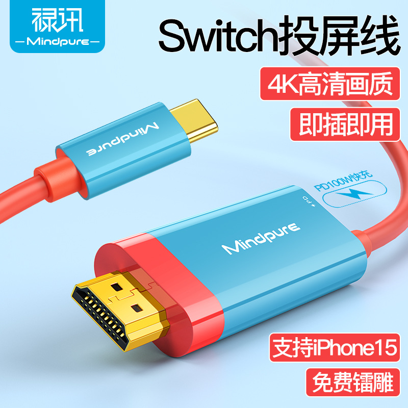 스위치 휴대용 스크린 프로젝션 케이블 typec-hdmi 플러스 전원 공급 장치 100 와트 고화질 휴대 전화 컴퓨터 빨간색과 파란색 변환 케이블스토어 가기