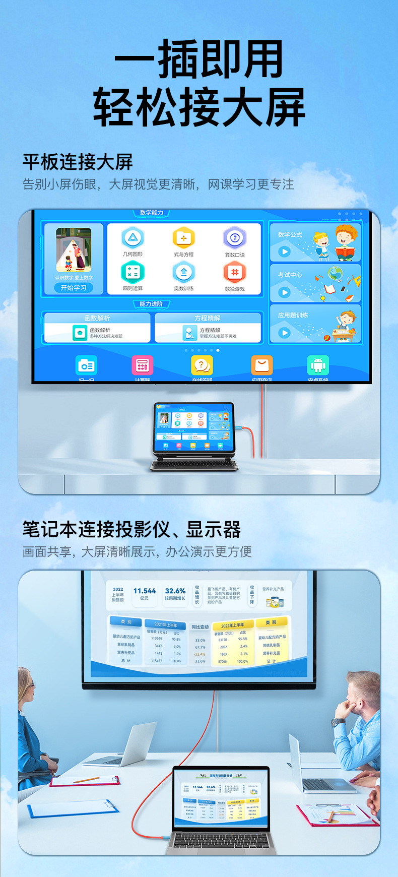 • AD072 Type-C - HDMI 스크린 프로젝션 케이블 2세대 4K/60Hz 빨간색 및 파란색