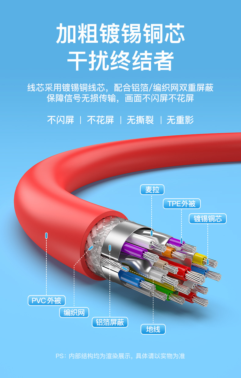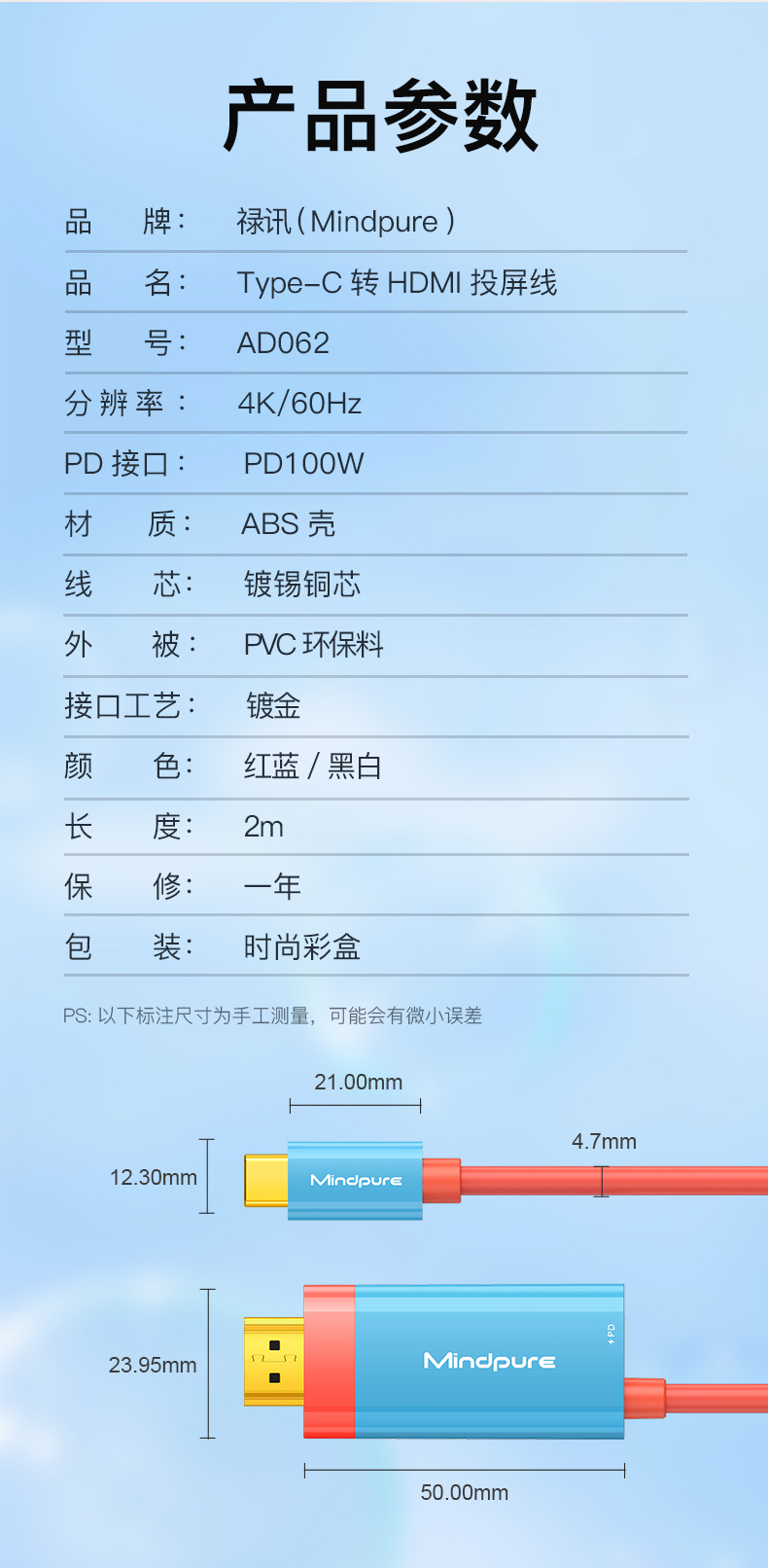 • AD062 USB Type-C HDMI 스크린 라인 4K/60Hz 빨강 및 파랑/2 m