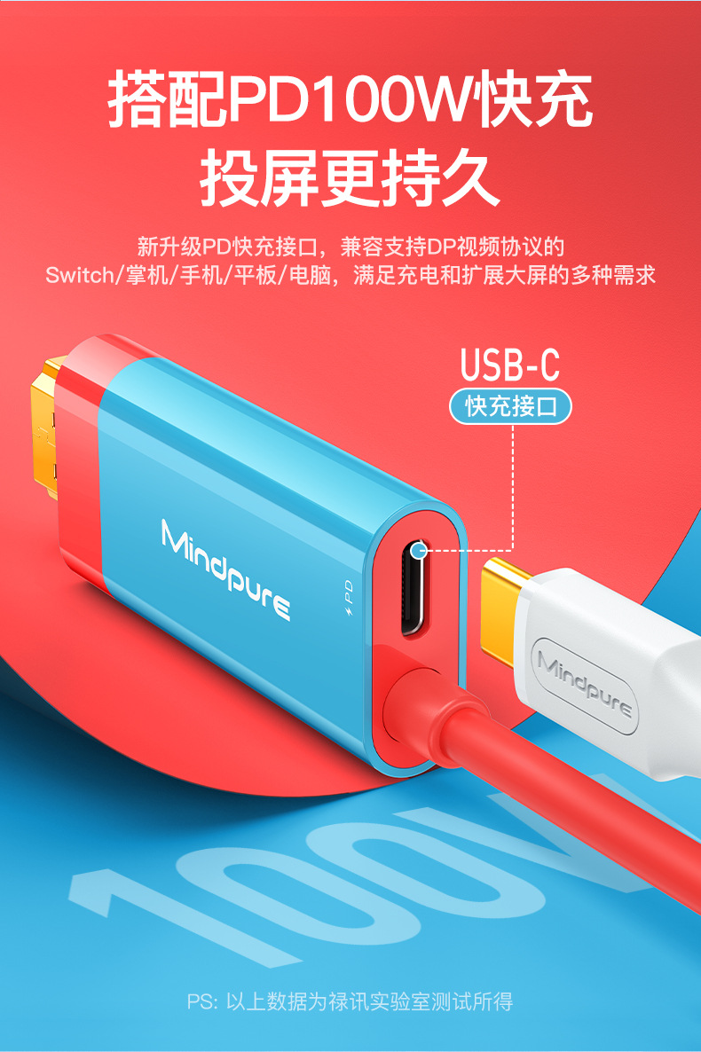 스위치 휴대용 스크린 프로젝션 케이블 typec-hdmi 플러스 전원 공급 장치 100 와트 고화질 휴대 전화 컴퓨터 빨간색과 파란색 변환 케이블