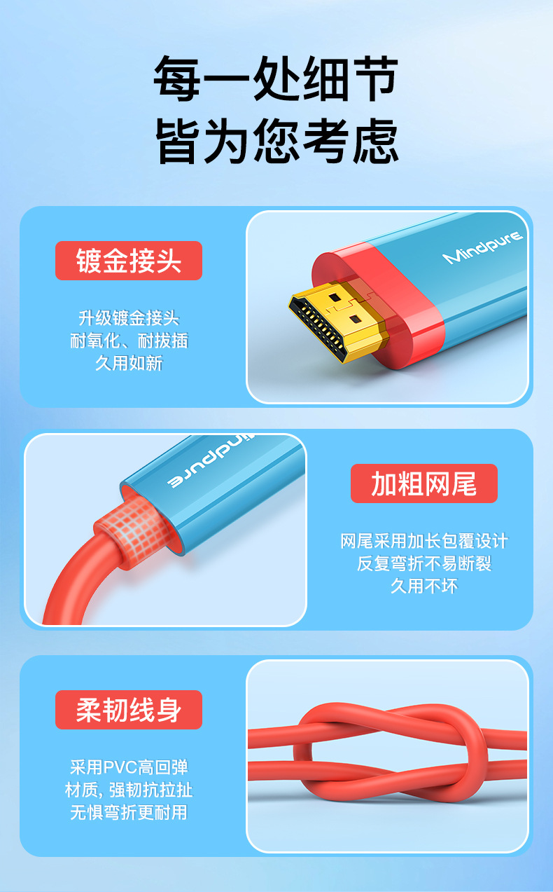 • AD061 USB Type-C HDMI 스크린 케이블 4K/30Hz 빨강 및 파랑/2 m