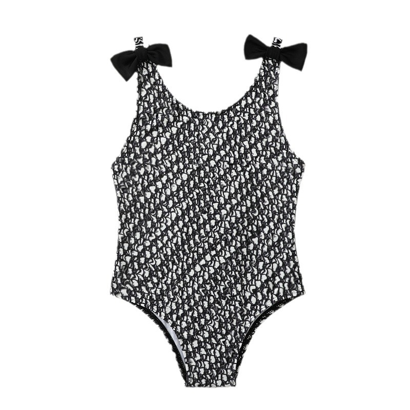 클래식 유럽과 미국의 패션 브랜드 어린이 원피스 수영복 소녀 디자이너 D-레터 프린트 탄성 밴드 수영 세트