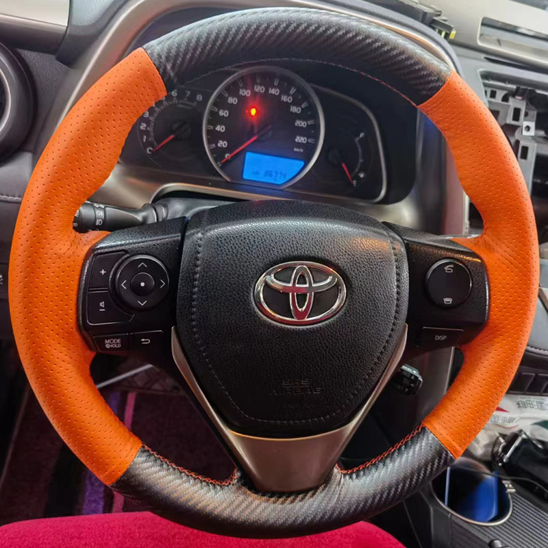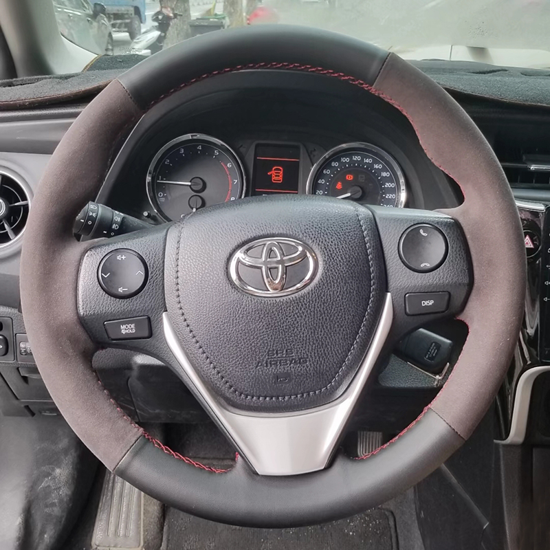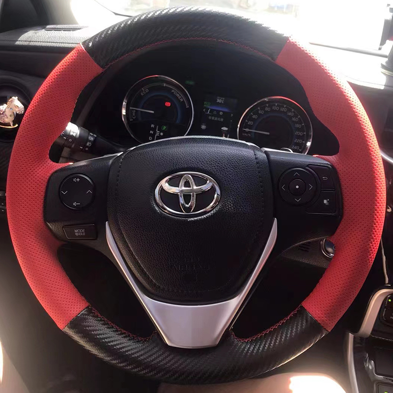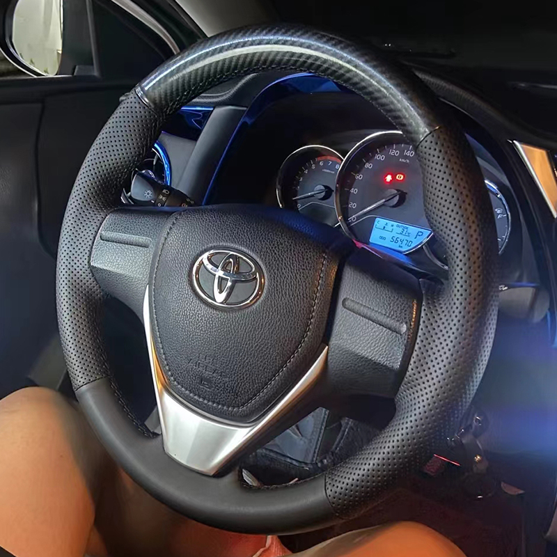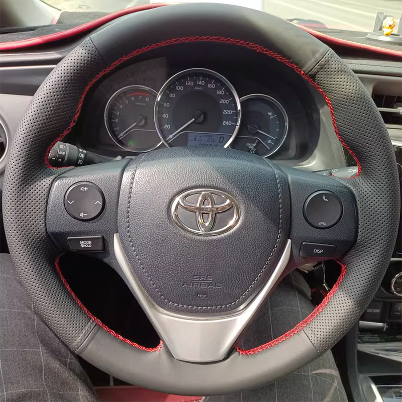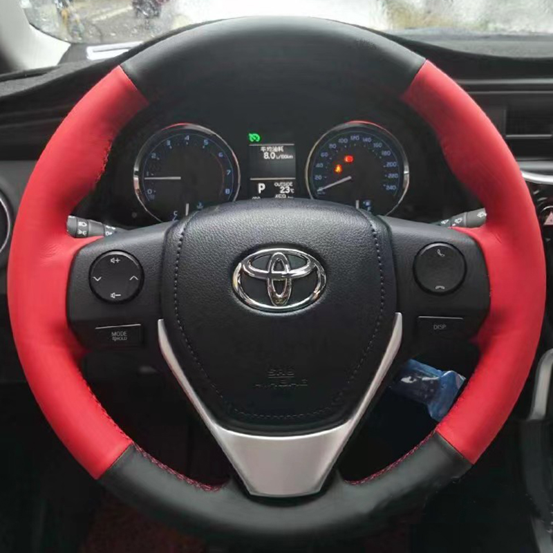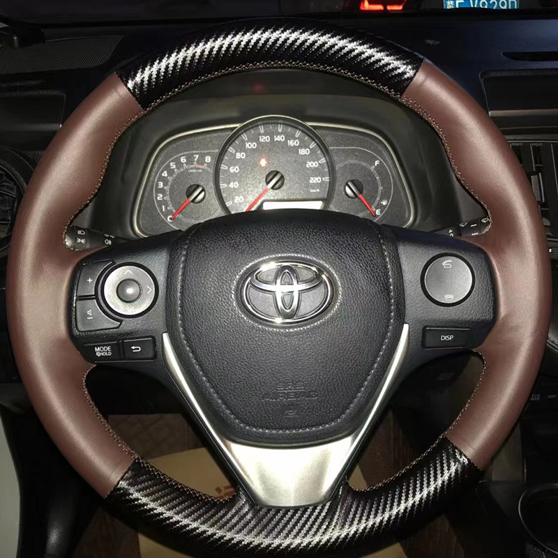 14-17-18 Toyota Corolla Ralink 스티어링 휠 커버 가죽 RAV4 Rongput 핸들 커버 특수 손으로 꿰맨 풀 백