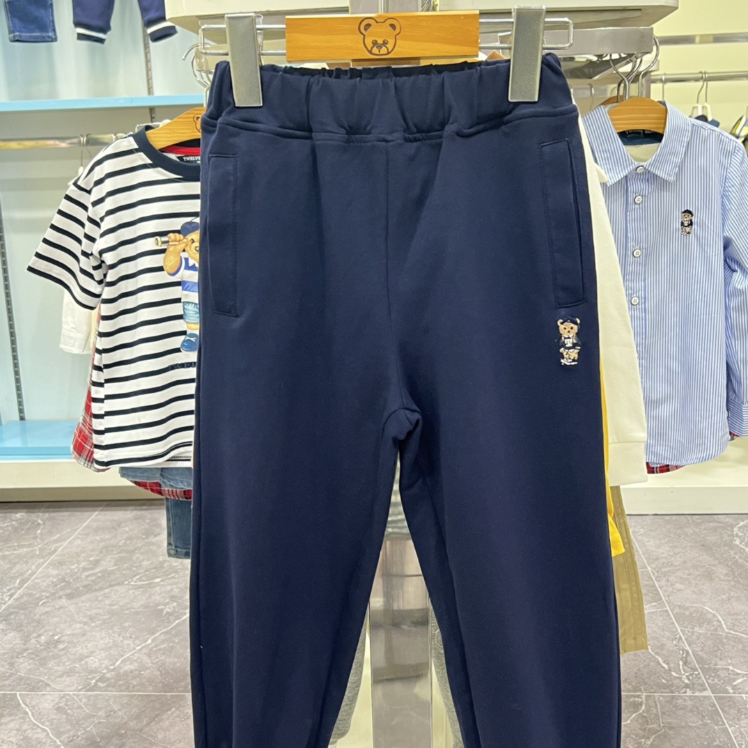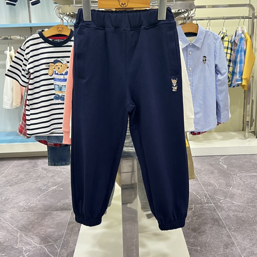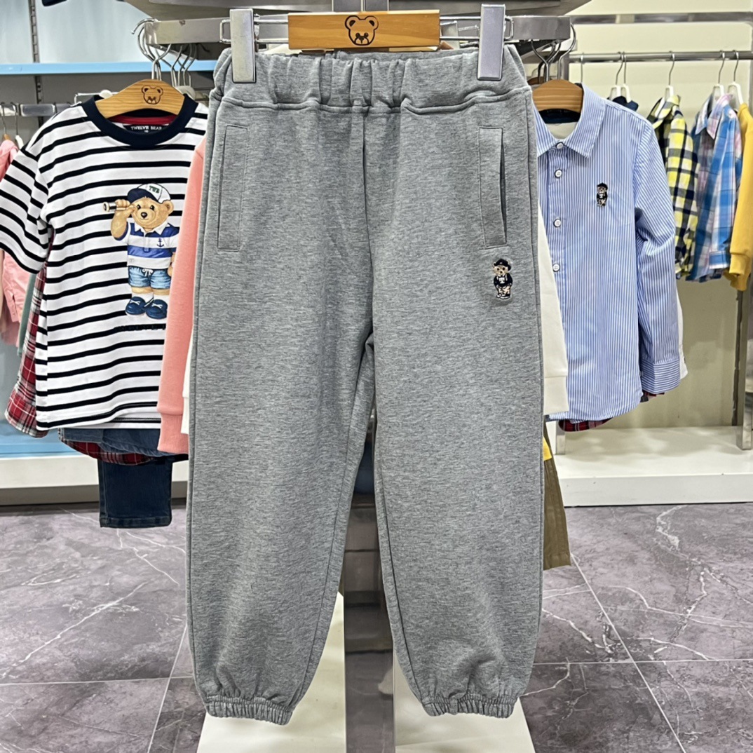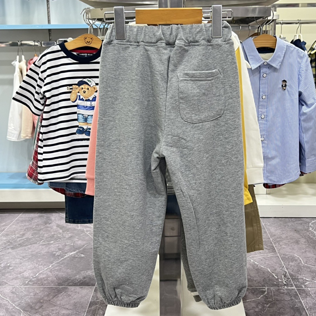 재고 있음: 리틀베어 아동복 2024 봄/가을 남아용 레터링 곰 모직 캐주얼 팬츠, 1개부터 직배송 가능