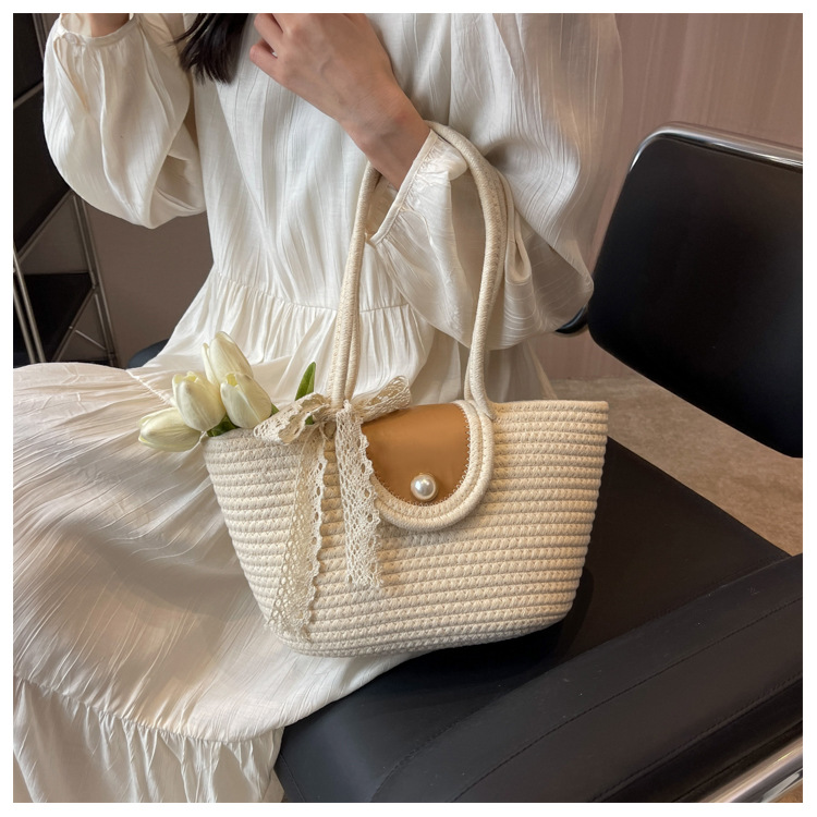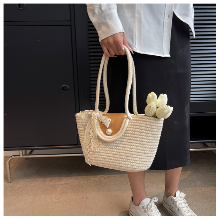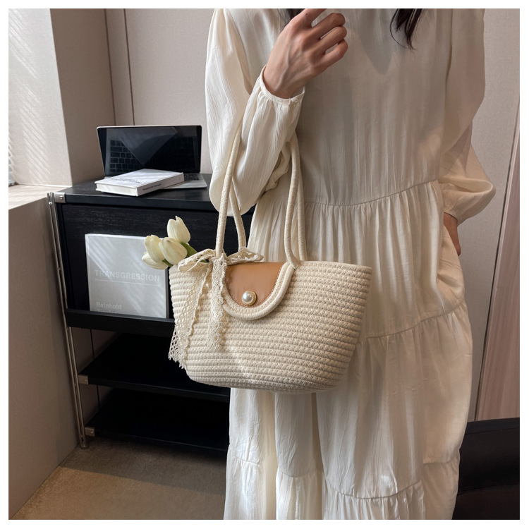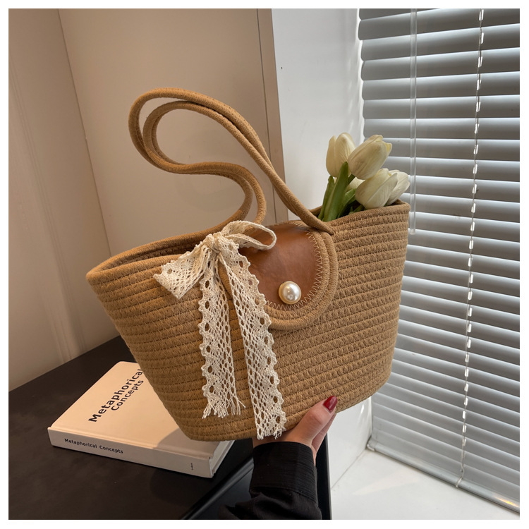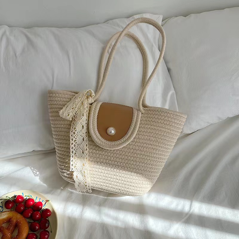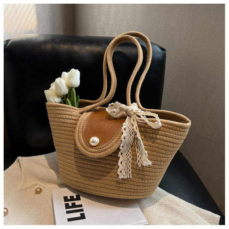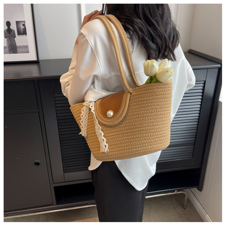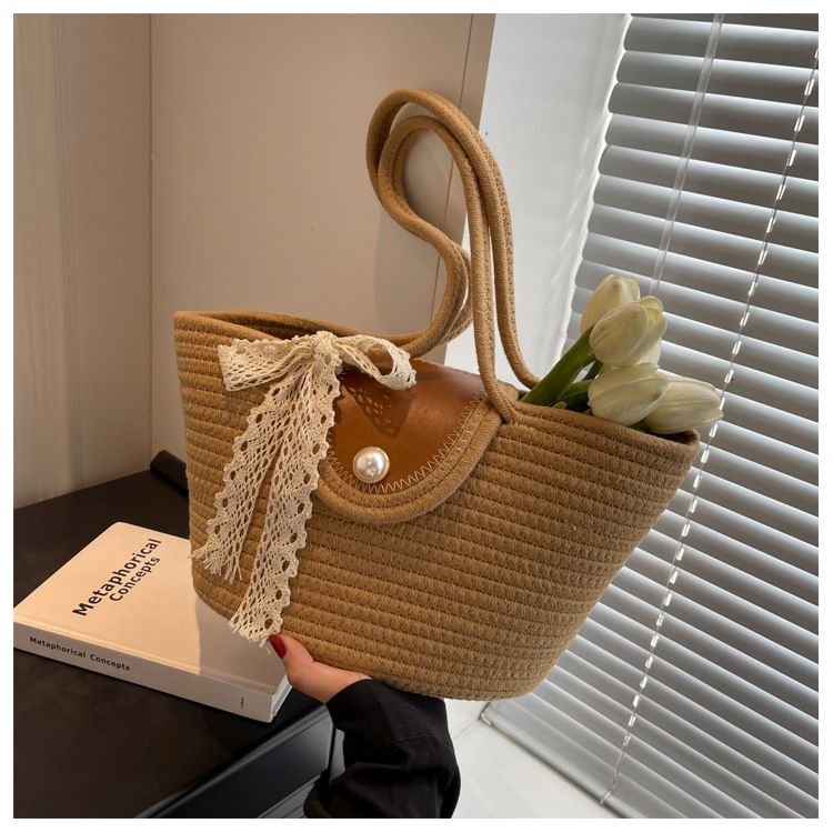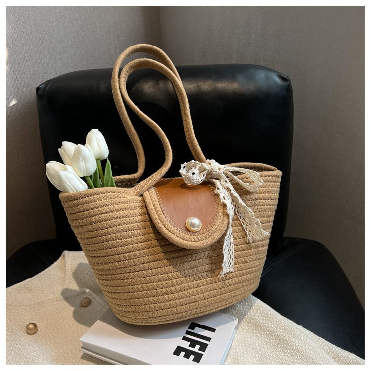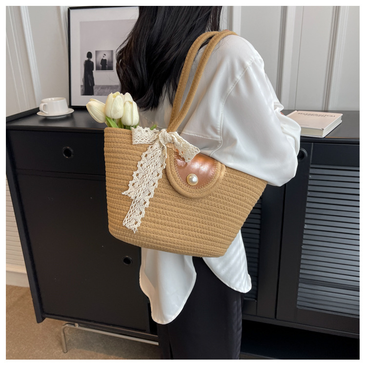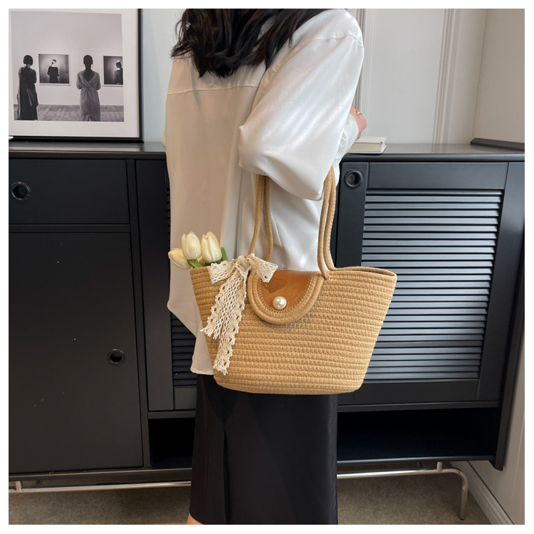새로운 밀짚 가방, 휴가용 배낭, 패셔너블하고 다재다능한 원 숄더 대용량 토트 여행용 비치 버킷 백
