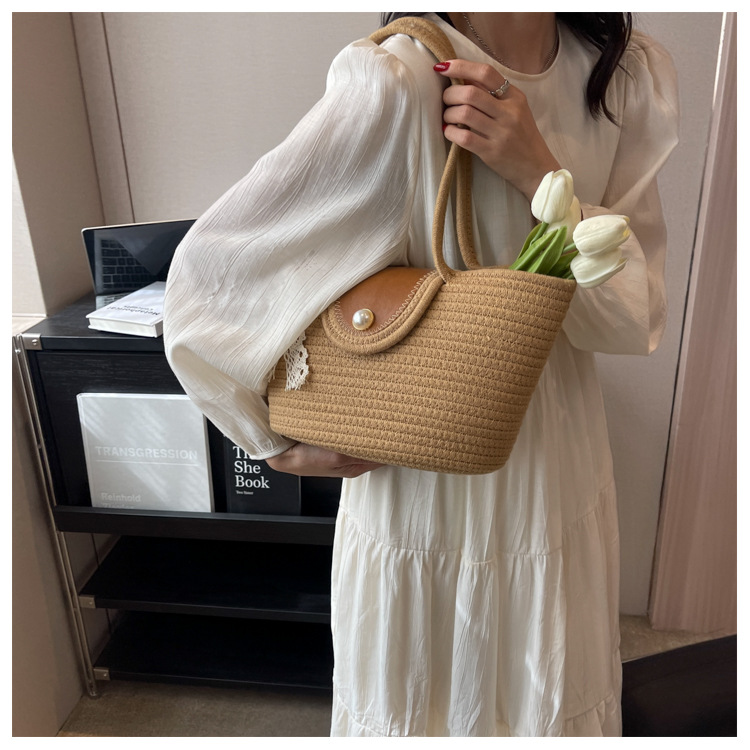 새로운 밀짚 가방, 휴가용 배낭, 패셔너블하고 다재다능한 원 숄더 대용량 토트 여행용 비치 버킷 백스토어 가기