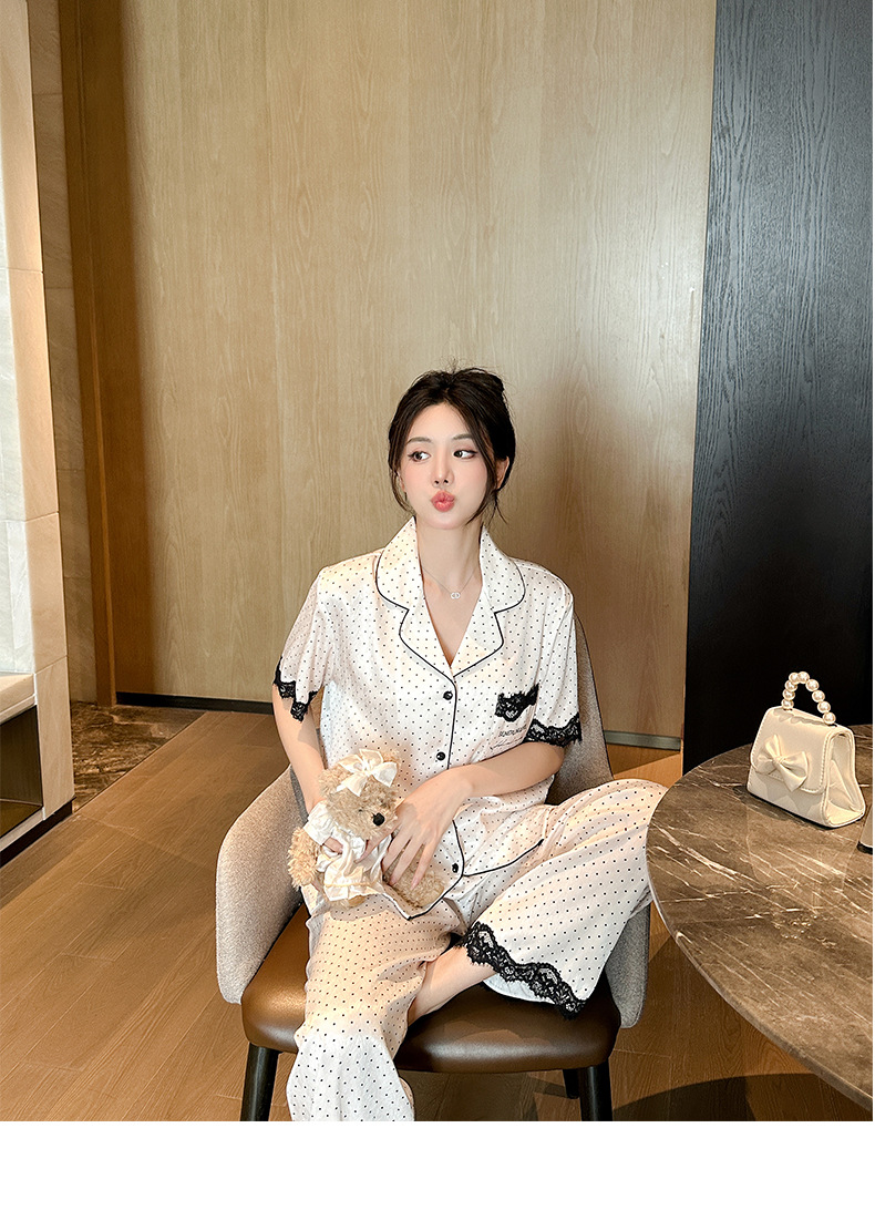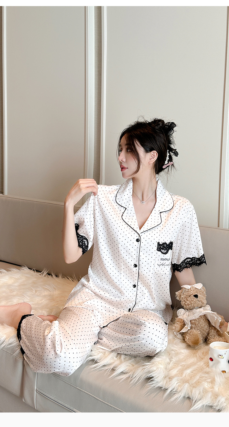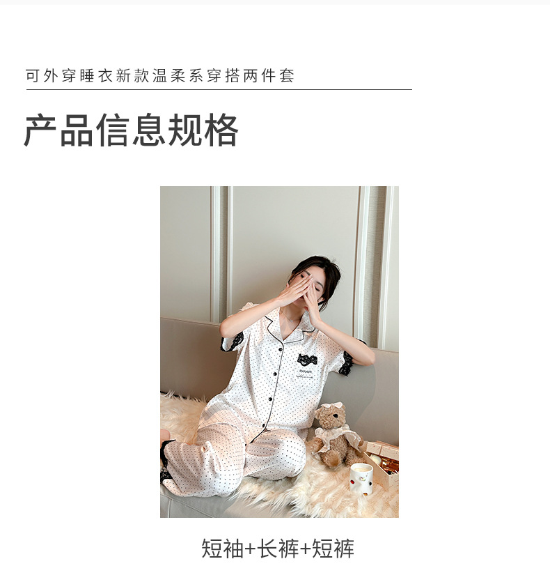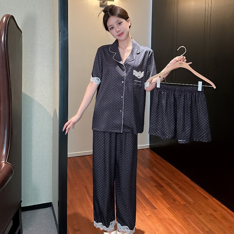 폴로 포인트 레이스 파자마 여성 2024 년 여름 새로운 고급 순수 욕망 여름 반팔 바지 3 피스 홈 옷스토어 가기