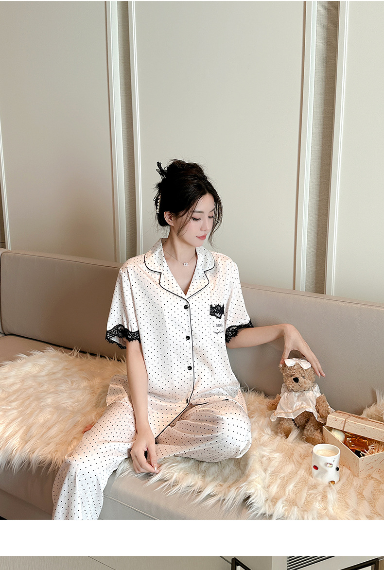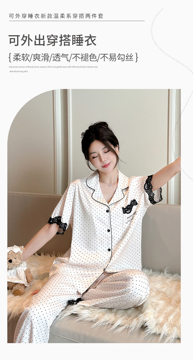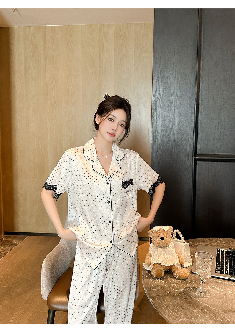 폴로 포인트 레이스 파자마 여성 2024 년 여름 새로운 고급 순수 욕망 여름 반팔 바지 3 피스 홈 옷스토어 가기