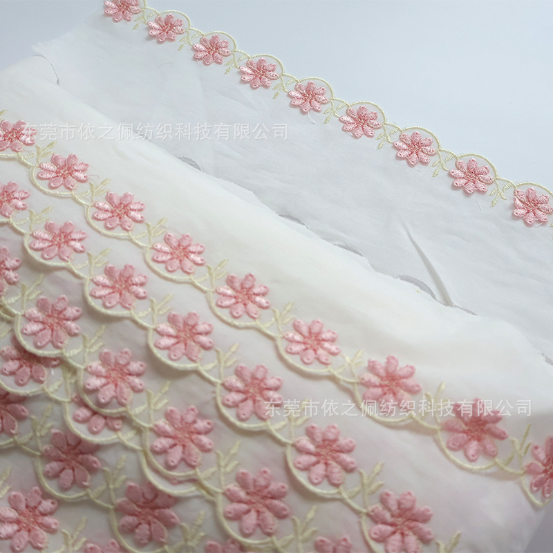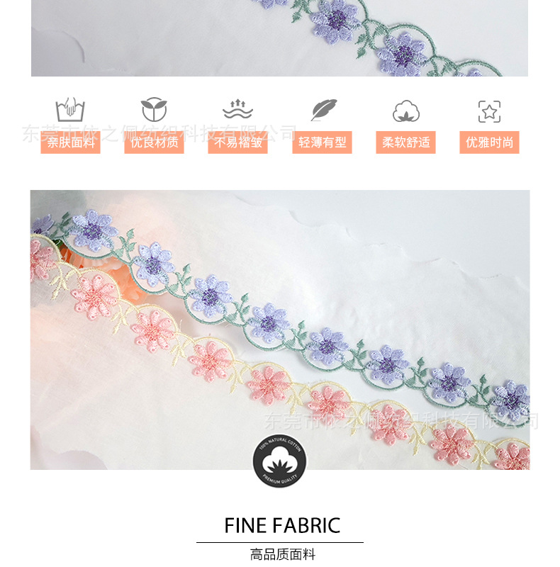공장 재고 면직물 레이스 입체 데이지 자수 아동 장식품 홈텍스타일 수공예 원단 부자재 폭 8CM