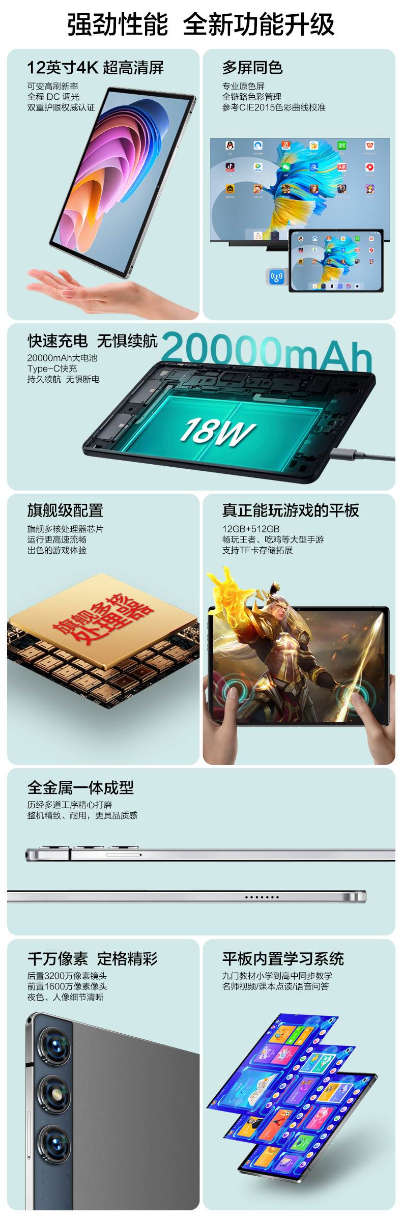 새로운 패드 스마트 태블릿 12 인치 4k 전체 화면 netcom 8 원자력 공장 직접 머리카락 세대