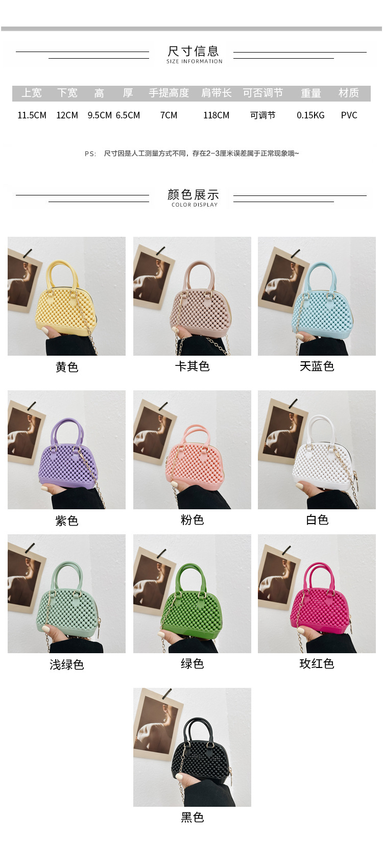 2025 여름 신상 PVC 젤리 쉘백 미니백 핸드백 트렌디 핫템 숄더백 크로스백 여성 가방스토어 가기