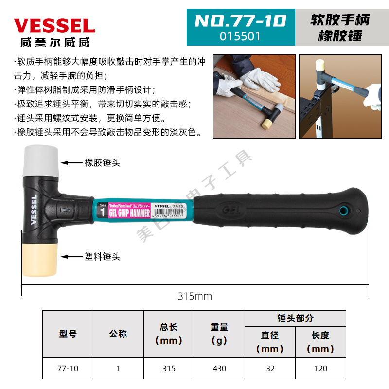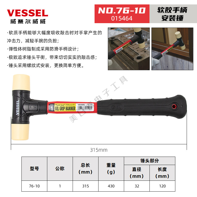 일본 VESSEL Weiwei 고무 망치 더블 헤드 타일 대리석 가구 수리 설치 망치 플라스틱 고무 망치