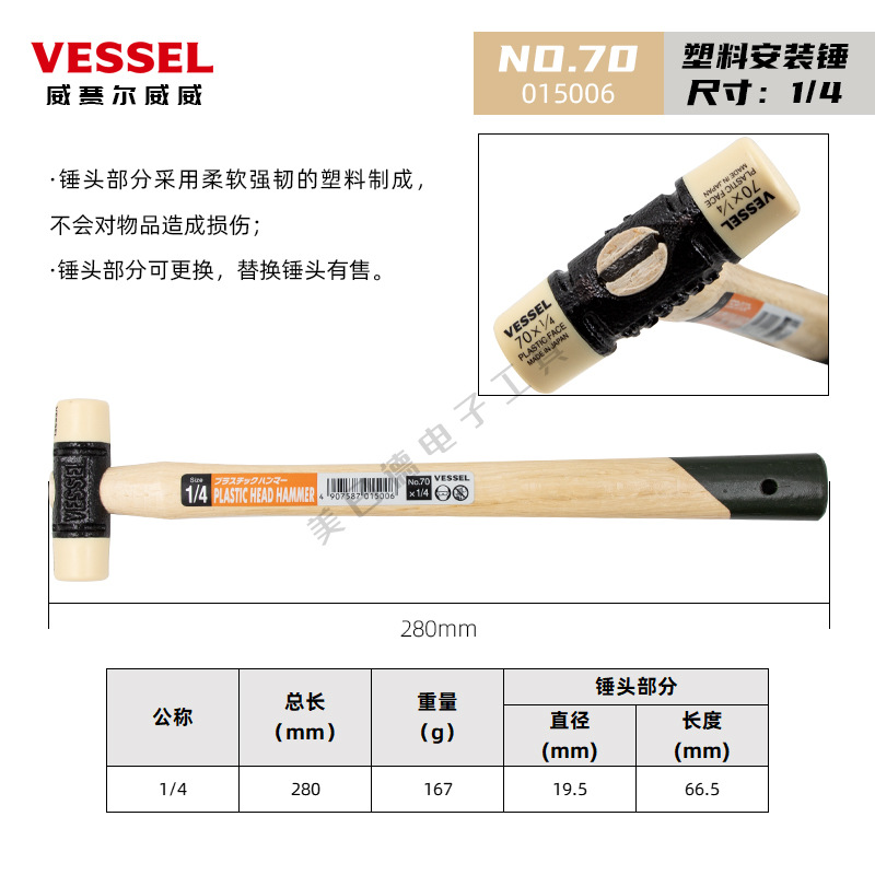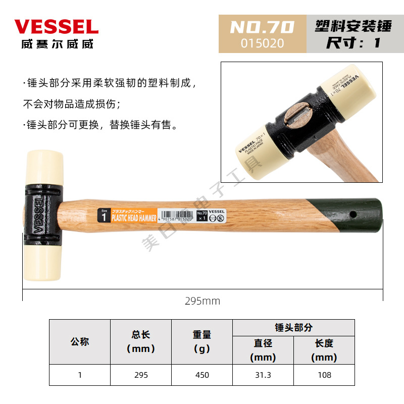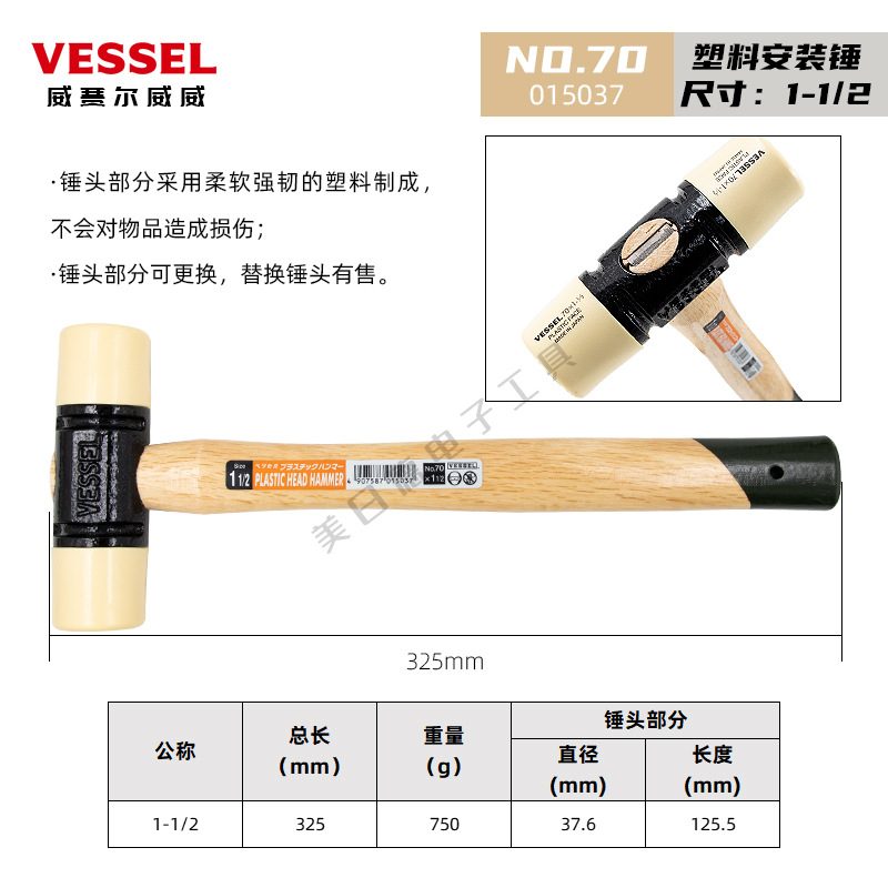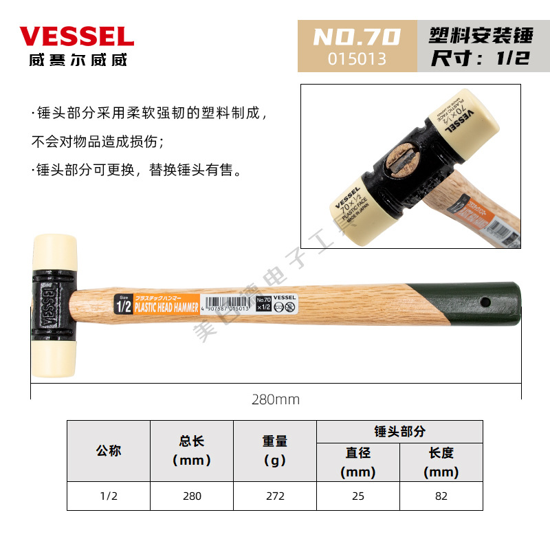 • [액세서리] NO.70x1-1/2 는 단단한 플라스틱 망치 헤드로 해머 헤드를 교체합니다.]