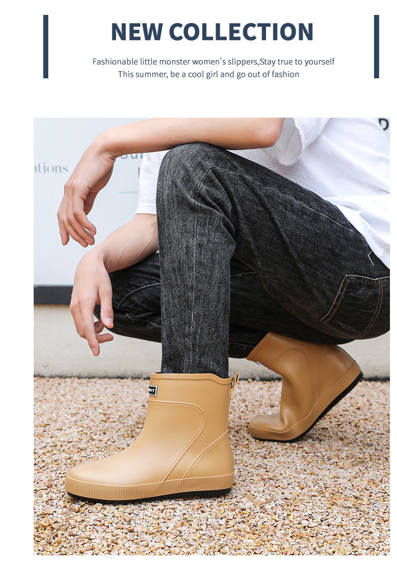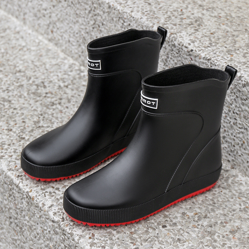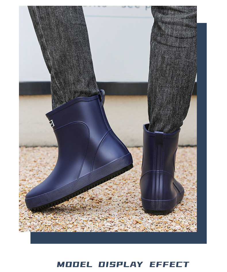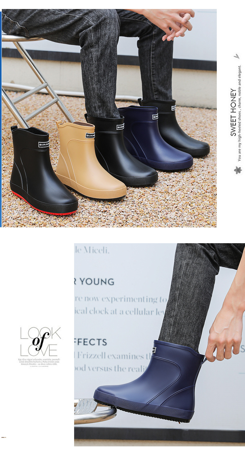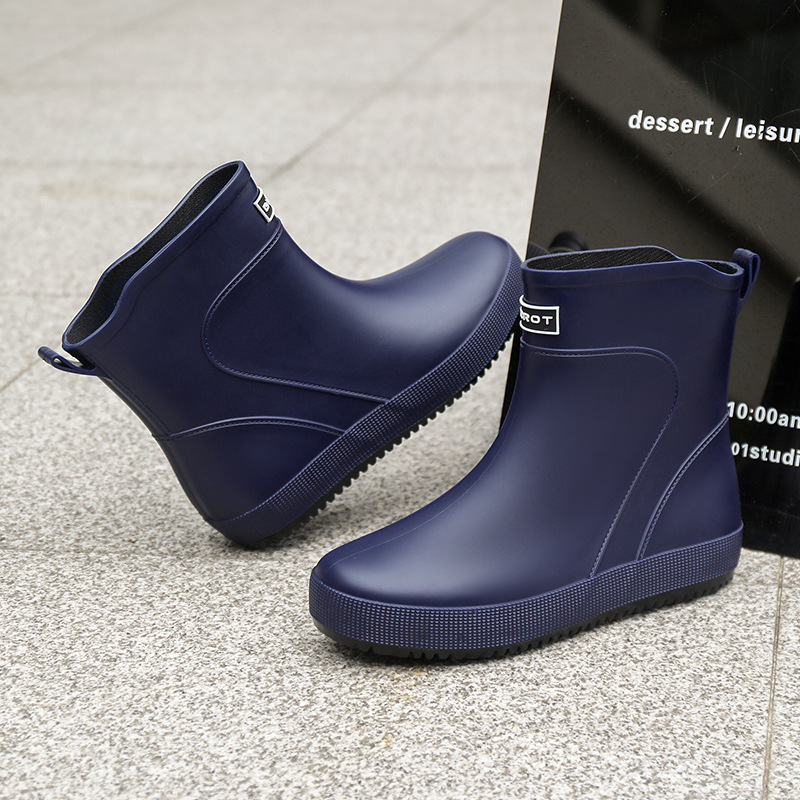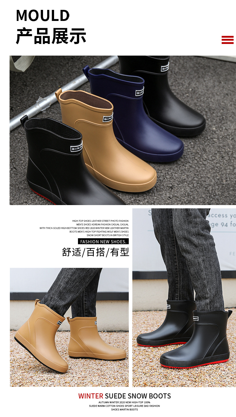 패션 새로운 남성 장화 짧은 작업 장마 부츠 미끄럼 방지 외부 착용 낮은 고무 신발 건설 현장 물 신발 도매스토어 가기