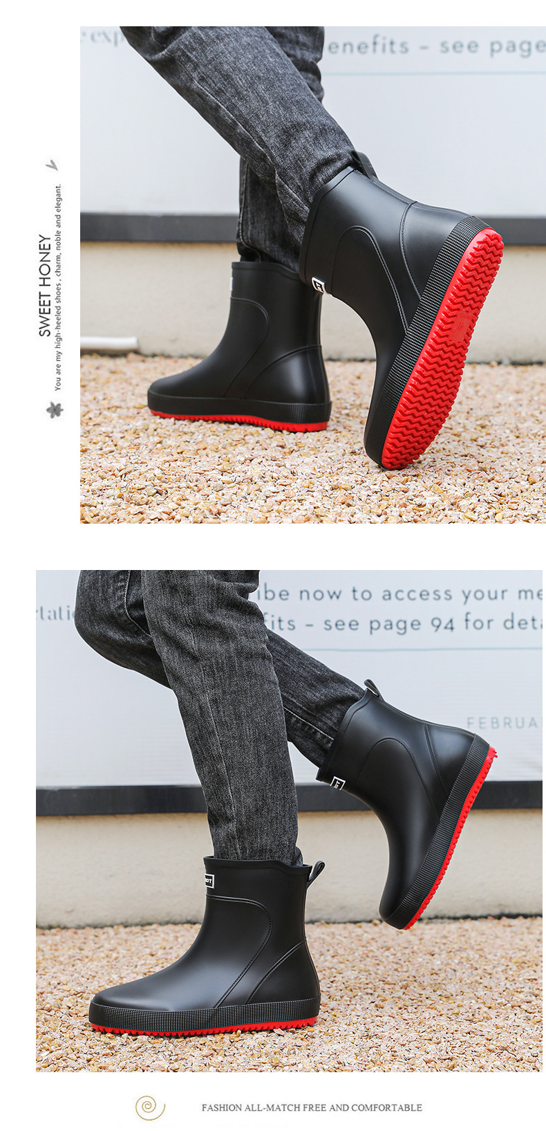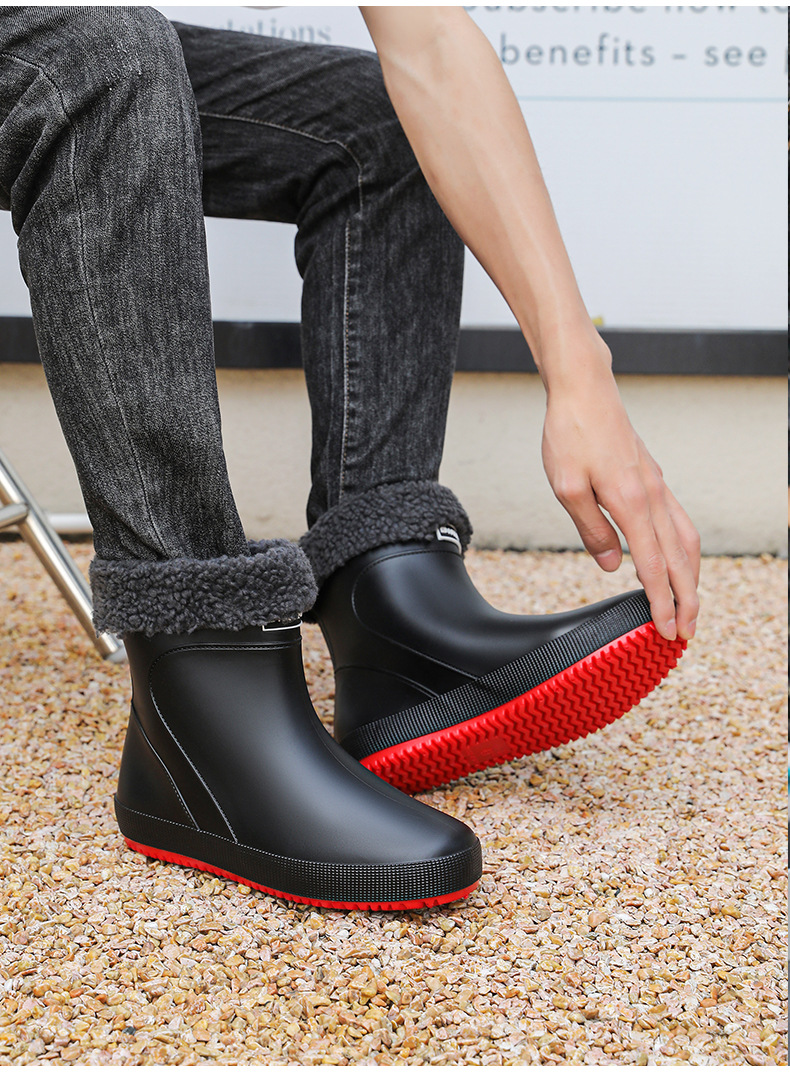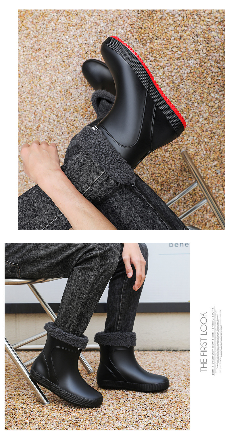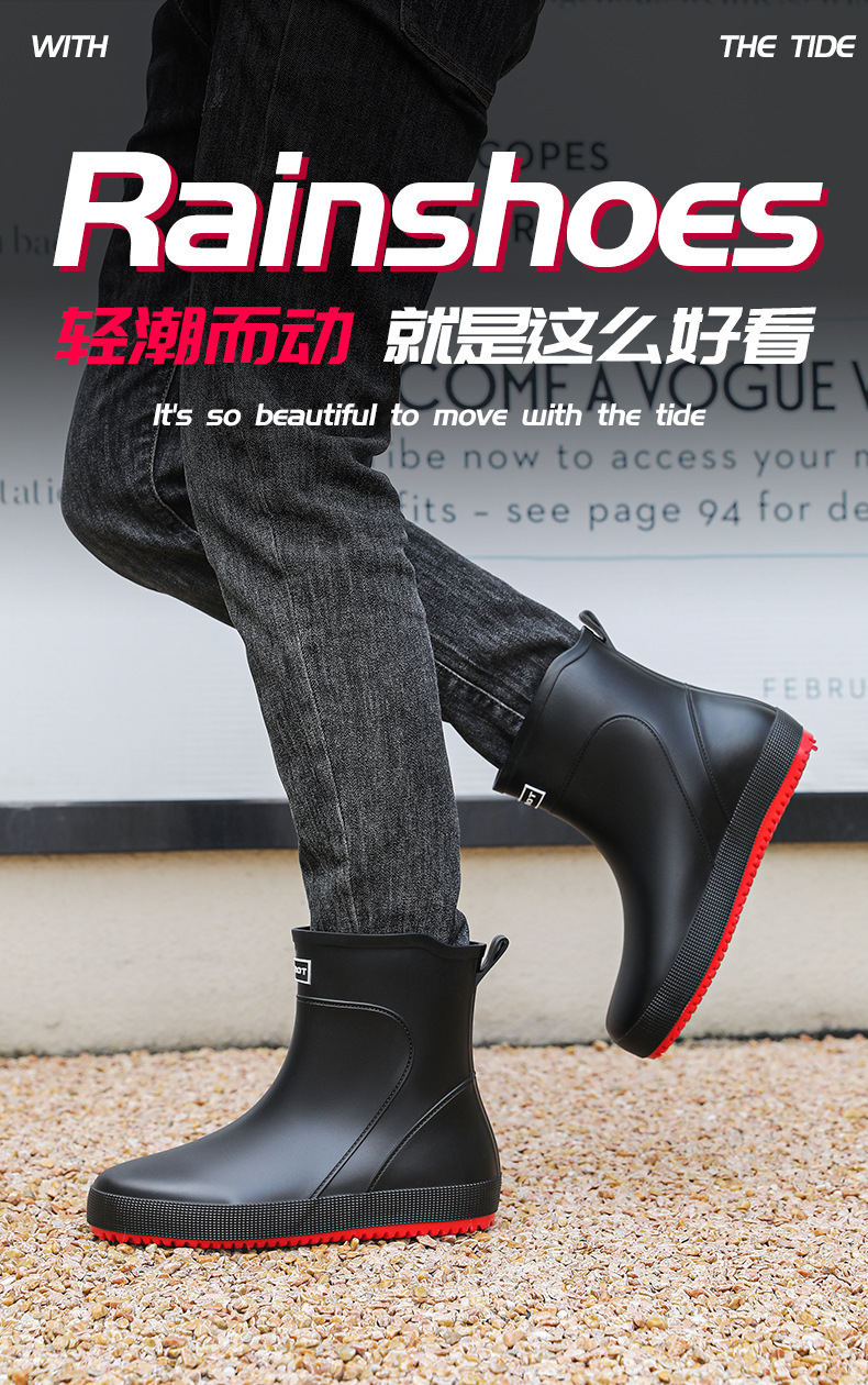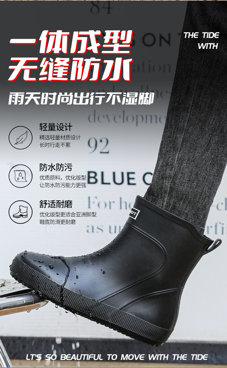 패션 새로운 남성 장화 짧은 작업 장마 부츠 미끄럼 방지 외부 착용 낮은 고무 신발 건설 현장 물 신발 도매스토어 가기