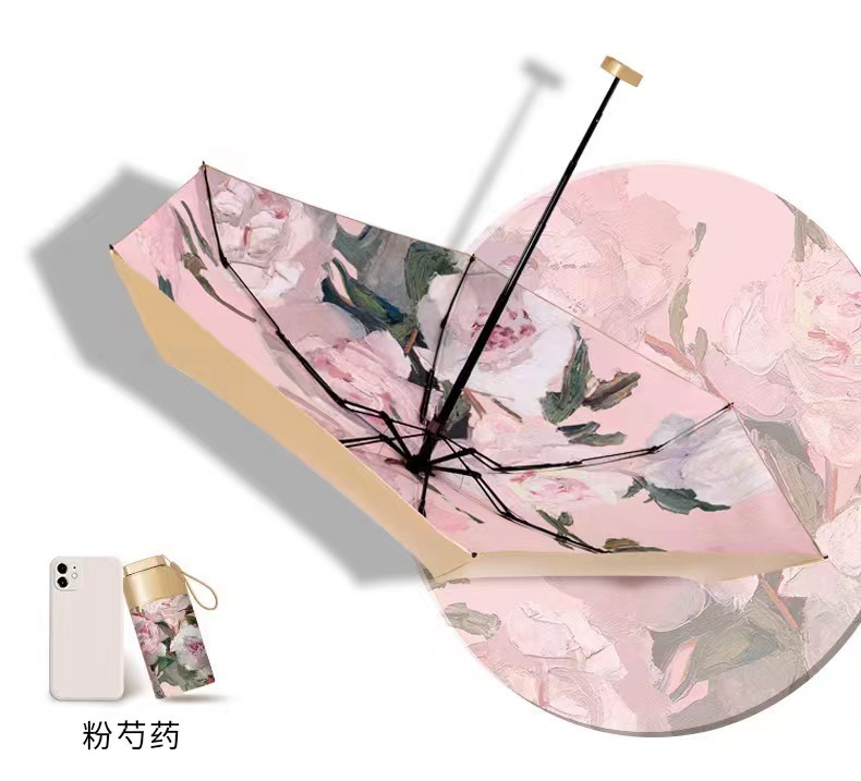 도매 평면 60% 휴대용 소형 울트라 라이트 우산 미니 모란 선 스크린 UV 차양 우산 패션 태양 우산