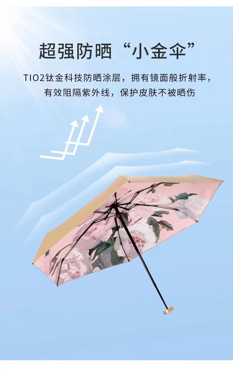 도매 평면 60% 휴대용 소형 울트라 라이트 우산 미니 모란 선 스크린 UV 차양 우산 패션 태양 우산스토어 가기