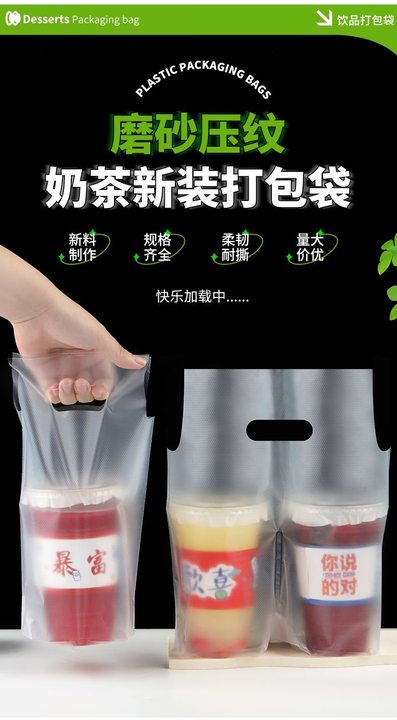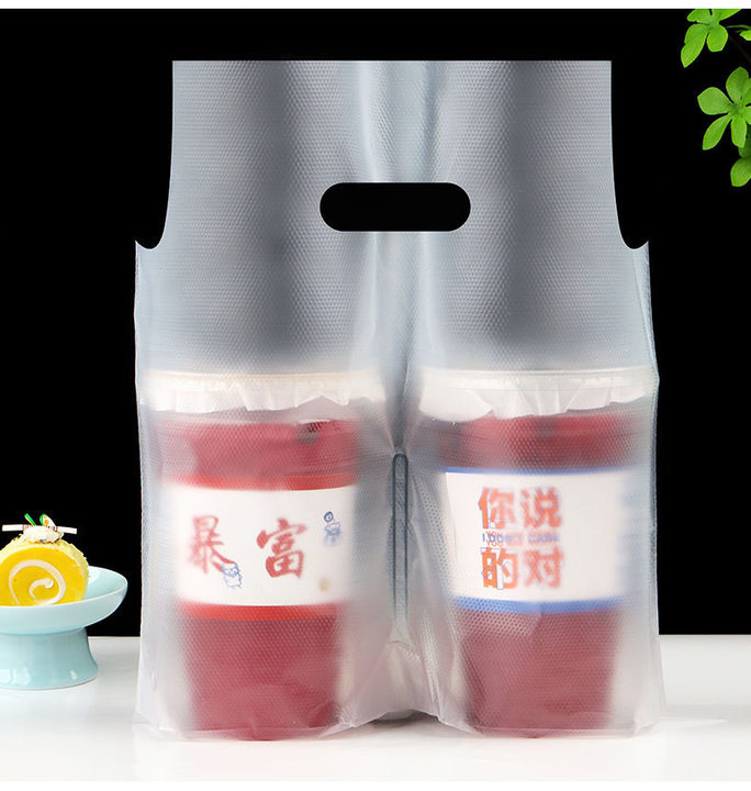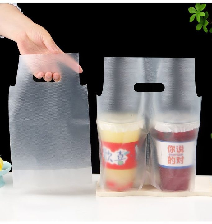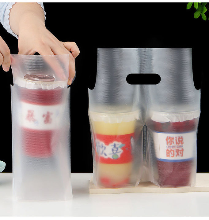 무광 고투명 밀크티 커피숍 포장봉투 두꺼운 일회용 음료 테이크아웃 봉투 싱글/더블컵 밀크티 포장봉투스토어 가기
