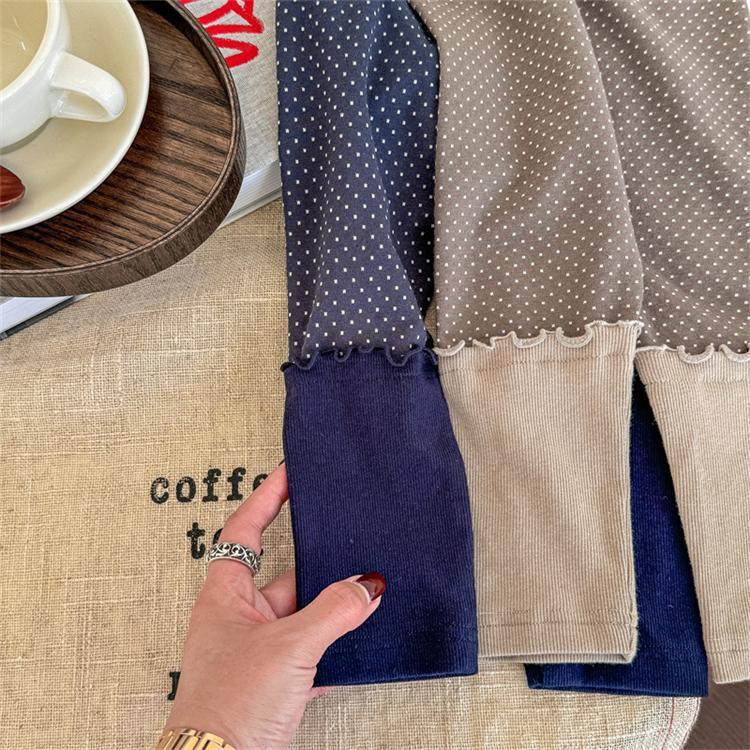소녀 레이스 스티칭 레깅스 바지 봄과 가을 한국 스타일 올 매치 폴로 닷 바지 어린이 발목 길이 바지 0038A043