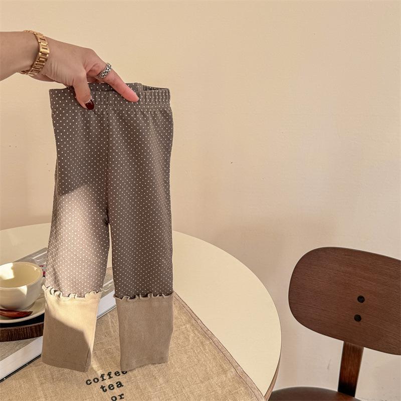 소녀 레이스 스티칭 레깅스 바지 봄과 가을 한국 스타일 올 매치 폴로 닷 바지 어린이 발목 길이 바지 0038A043스토어 가기